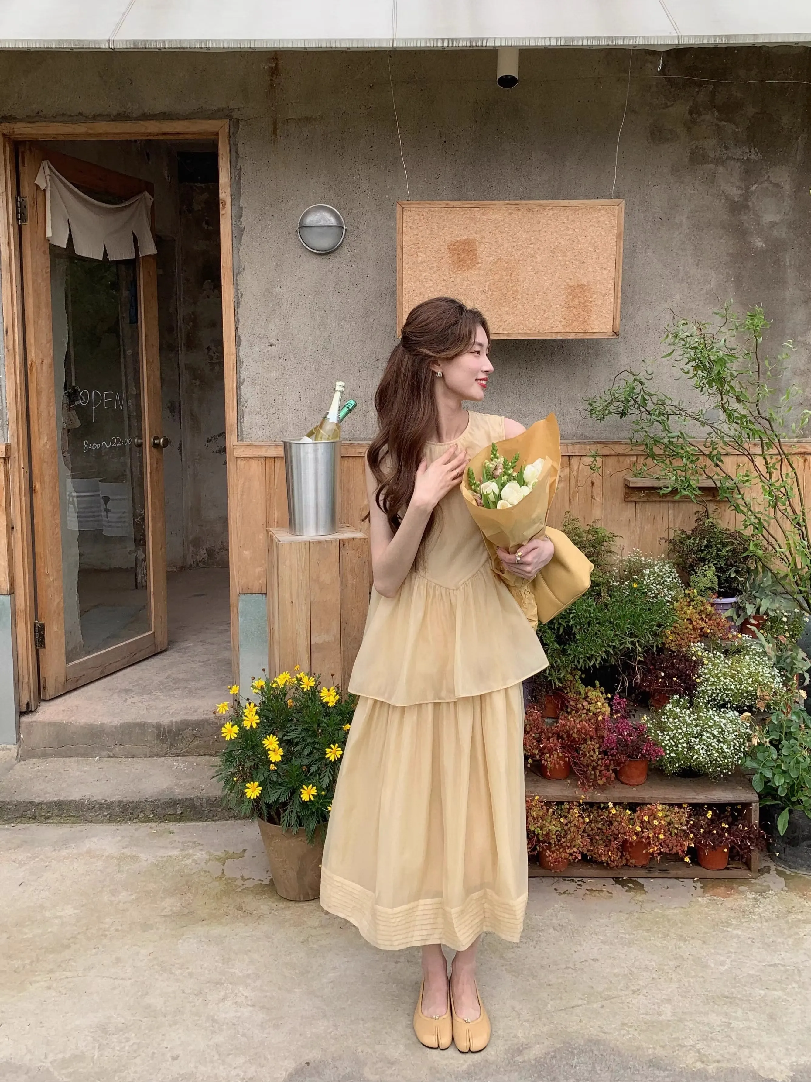 vmtvr Sleeveless Dress for Women New Fashion Elegant O Neck Solid Dresses French Style Loose Midi Summer Dress