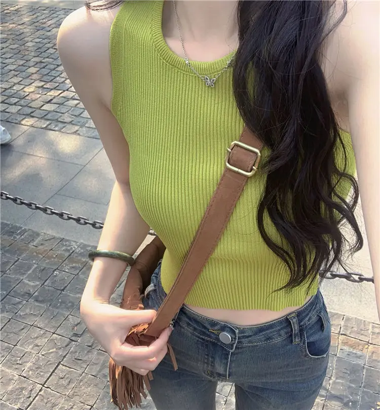 vmtvr Slim Navel Short Knit Vest Summer Slim Small Camisole Bottom Sleeveless Tops Women Sexy