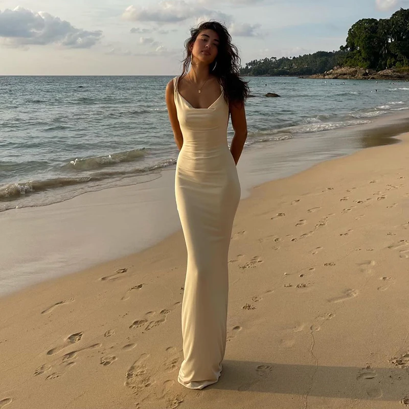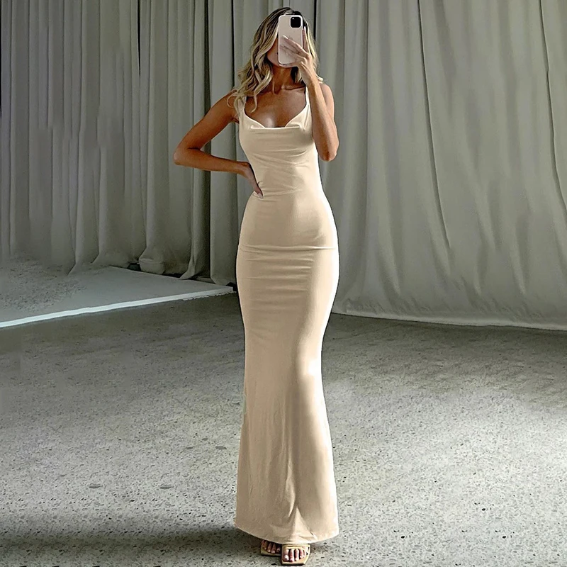 vmtvr Solid New Sexy Dress Women Summer Sleeveless Fashion Backless Straps Maxi Dress Slim Casual Streetwear Club Elegant Party Dress