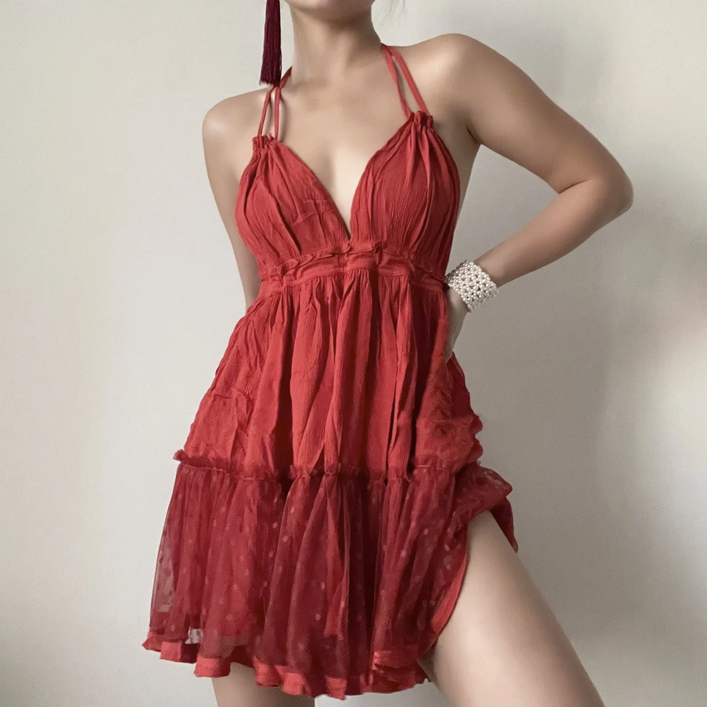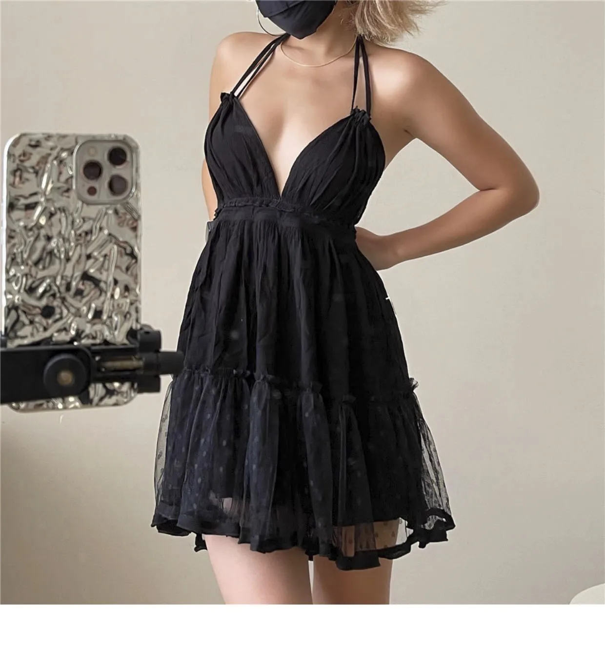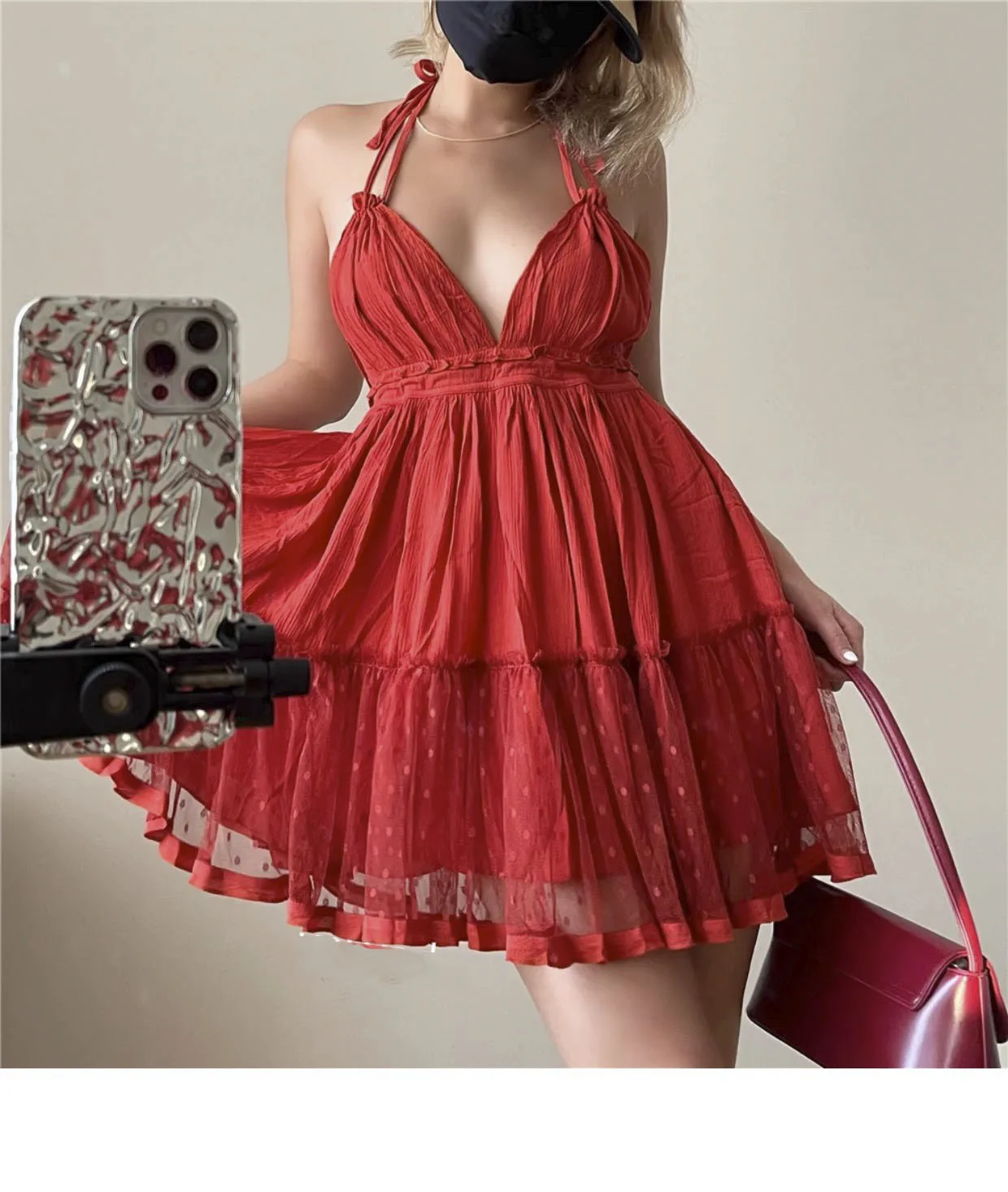 vmtvr Straples Summer Boho Dress Women Foremode Flounced Edge Backless Sexy Lace Up Shirring Girls Bohemian Beach Mini Dress Vestidos