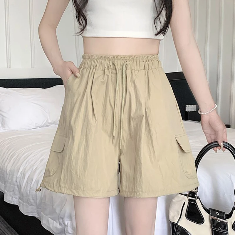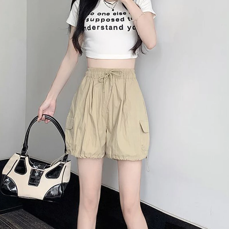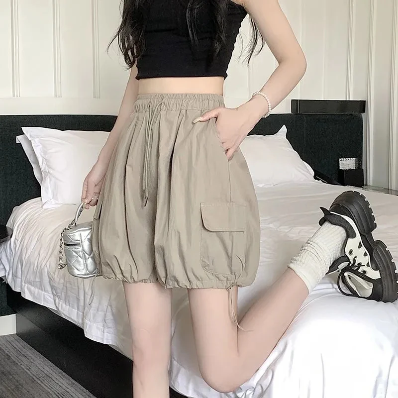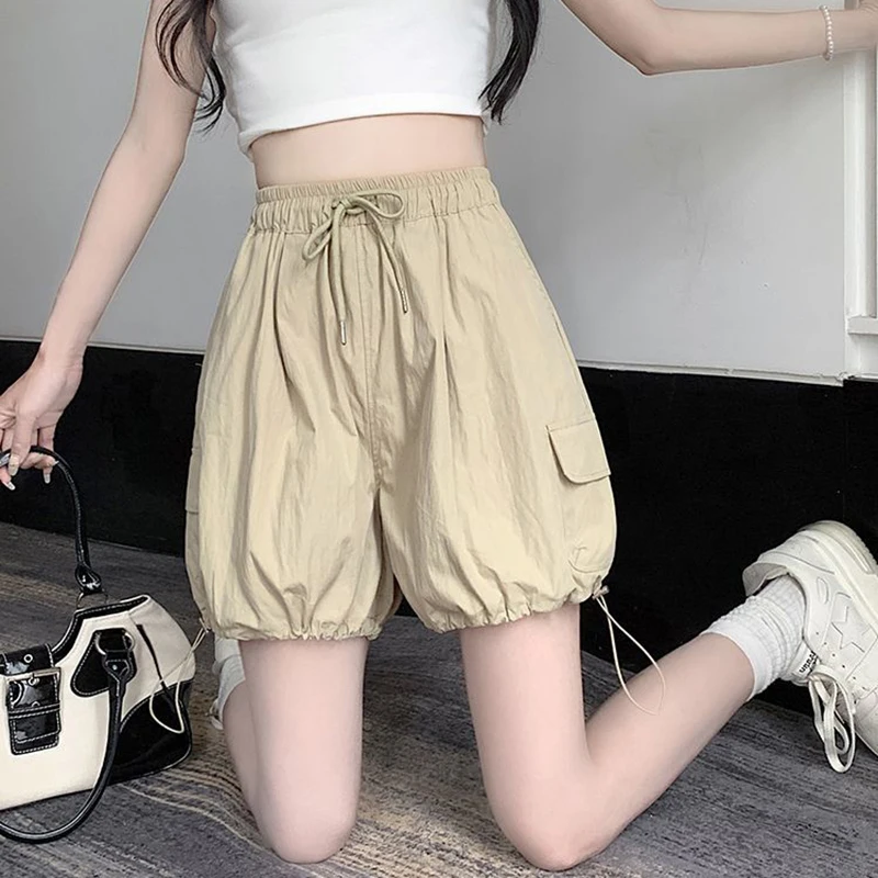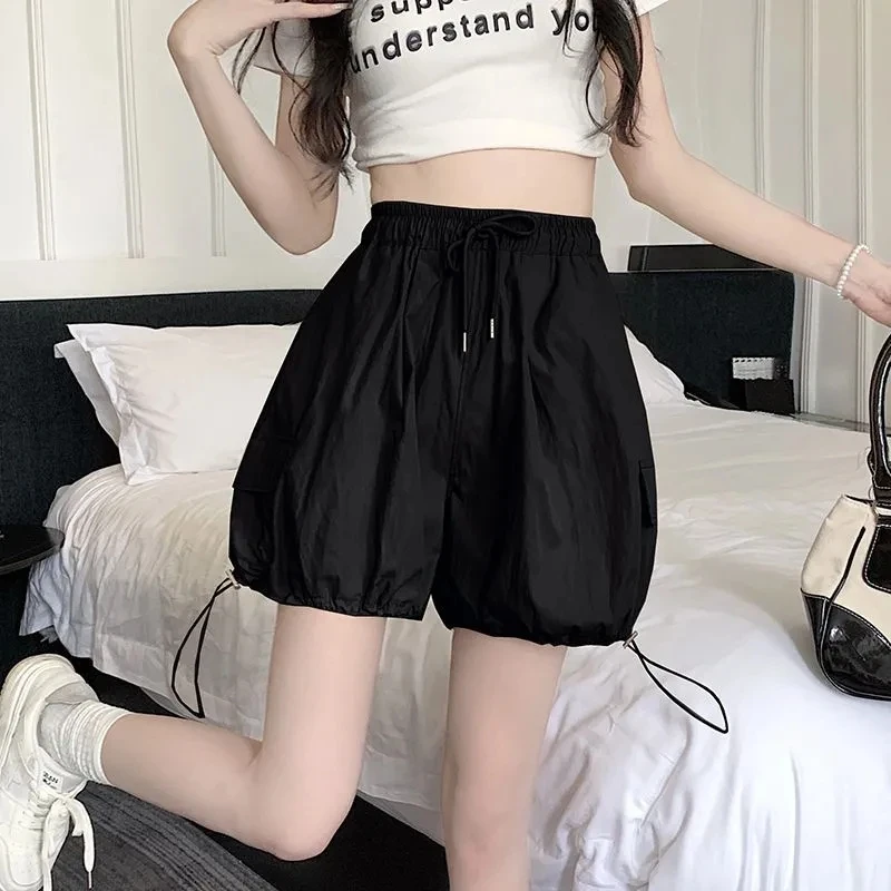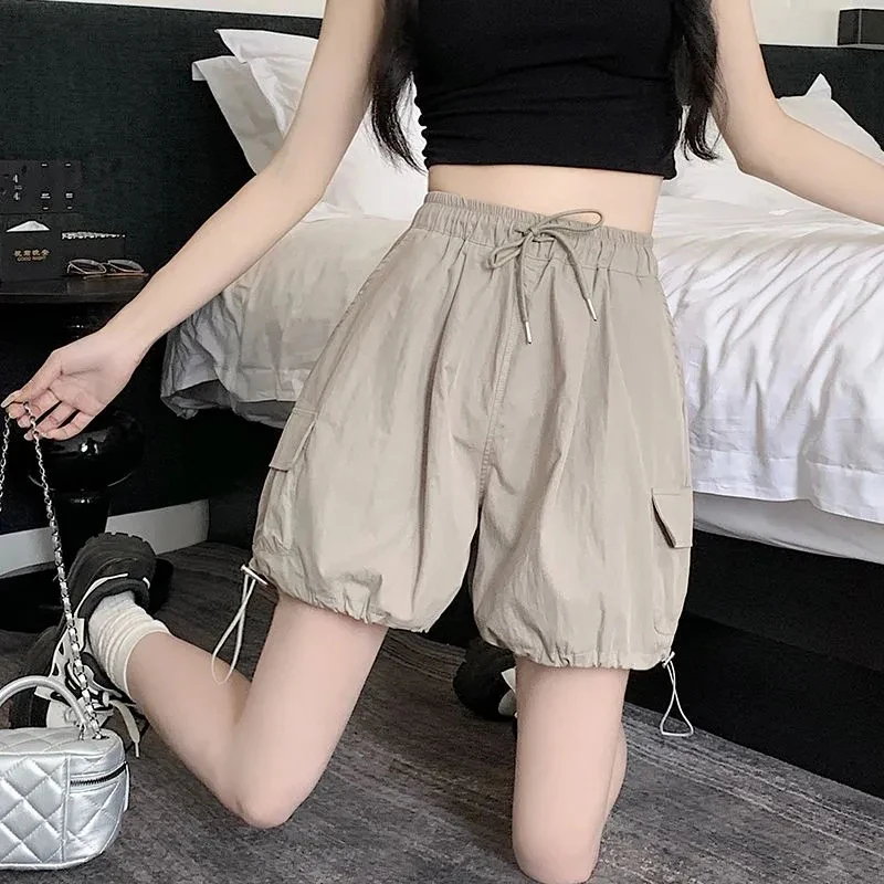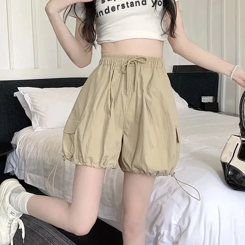 vmtvr Streetwear Women Cargo Shorts Summer Fashion Drawstring Loose Wide Leg Pants Y2K Casual Pockets Female Lantern Shorts New
