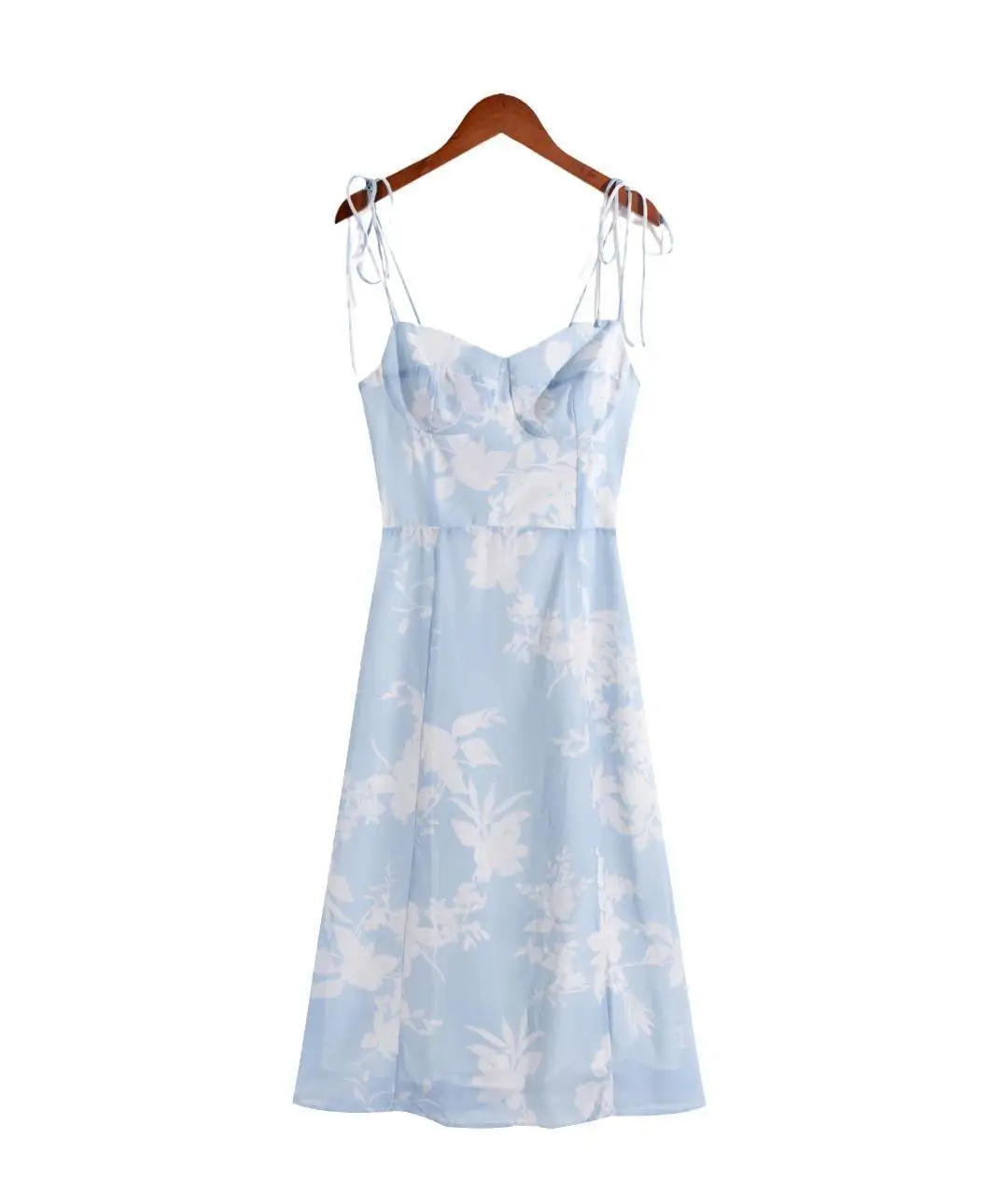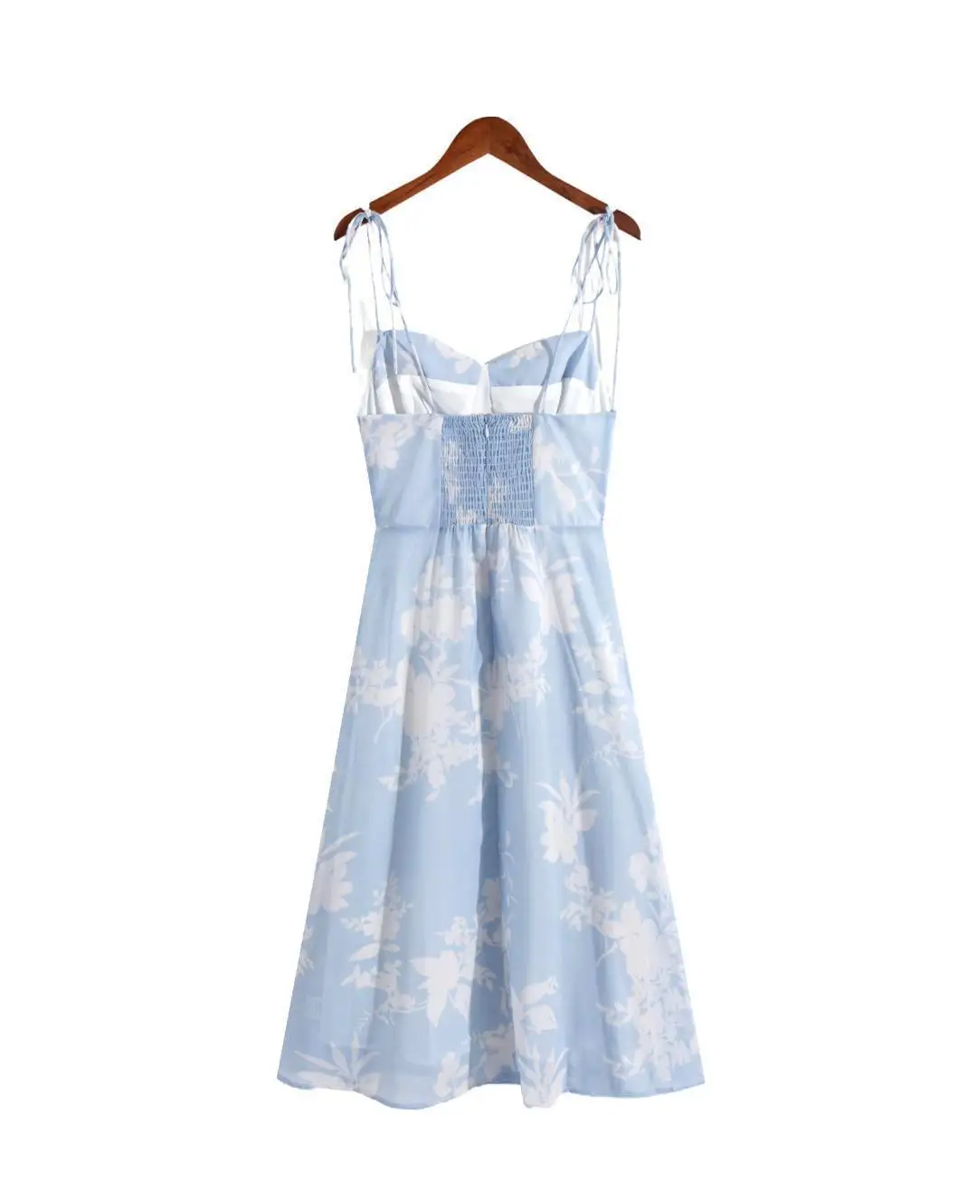 vmtvr Summer Camisole Blue Chiffon Dress Women Backless Floral Print Midi Dresses Bodycon