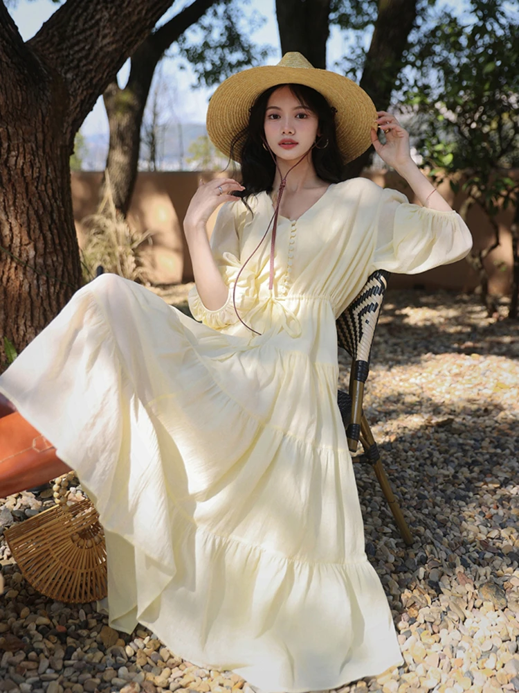 vmtvr Summer Elegant Midi Dress Women Casual Korean Fashion Evening Party Dress Solid Beach Short Sleeve Sundress Woman Holiday