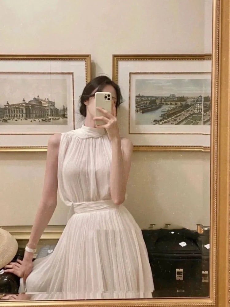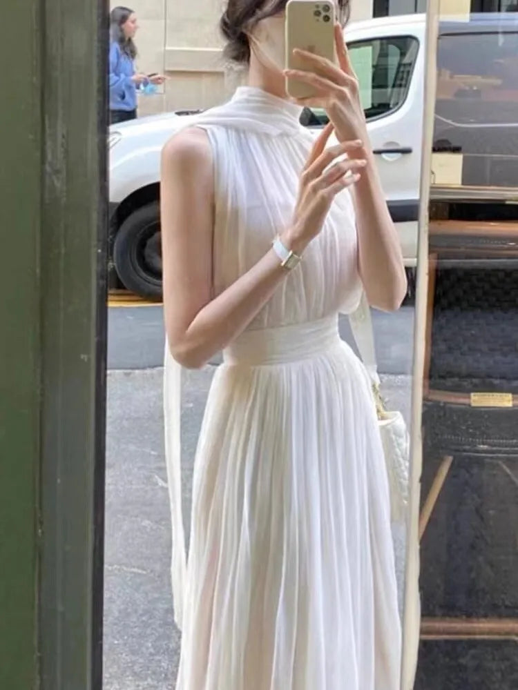 vmtvr Summer Elegant Women's Two-piece Suit Top and SKirt A-line Solid Sleeveless Backless Femal Clothes 2-Piece White Fashion Korea
