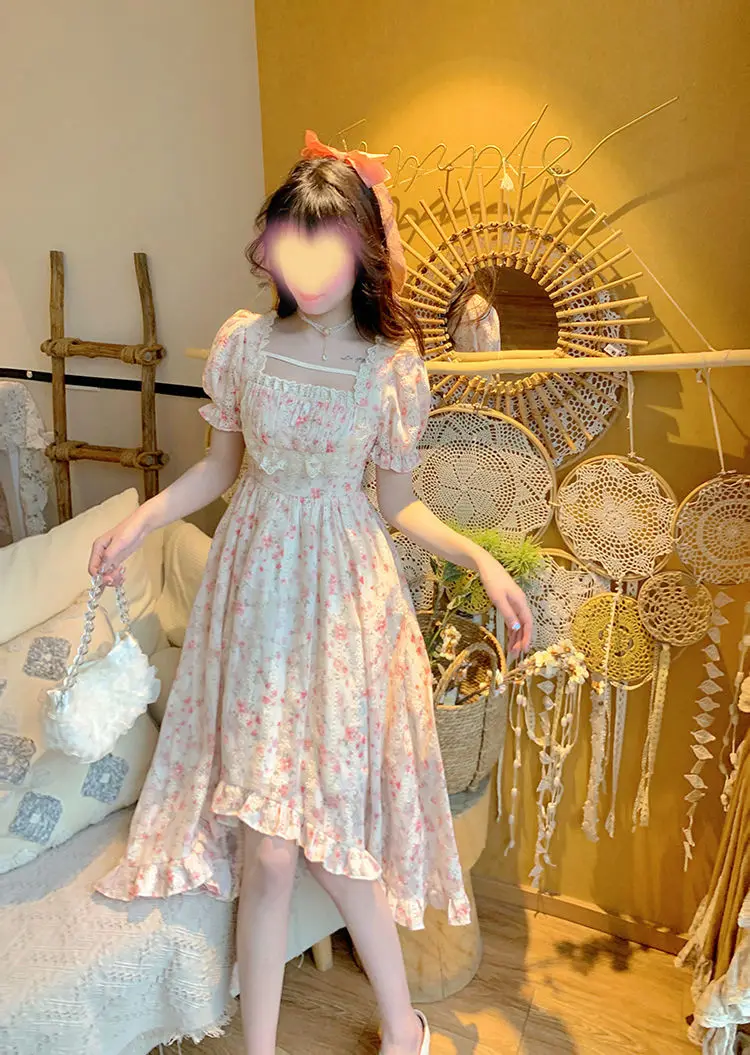 vmtvr Summer Floral Print Dress Women Lace Boho Kawaii Party Dress Female Casual Korean Fashion Holiday Lolita Elegant Midi Dress