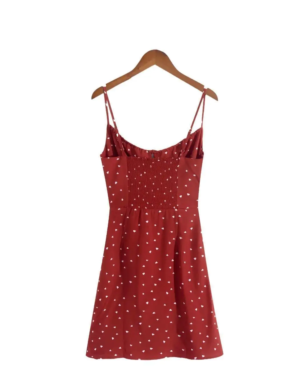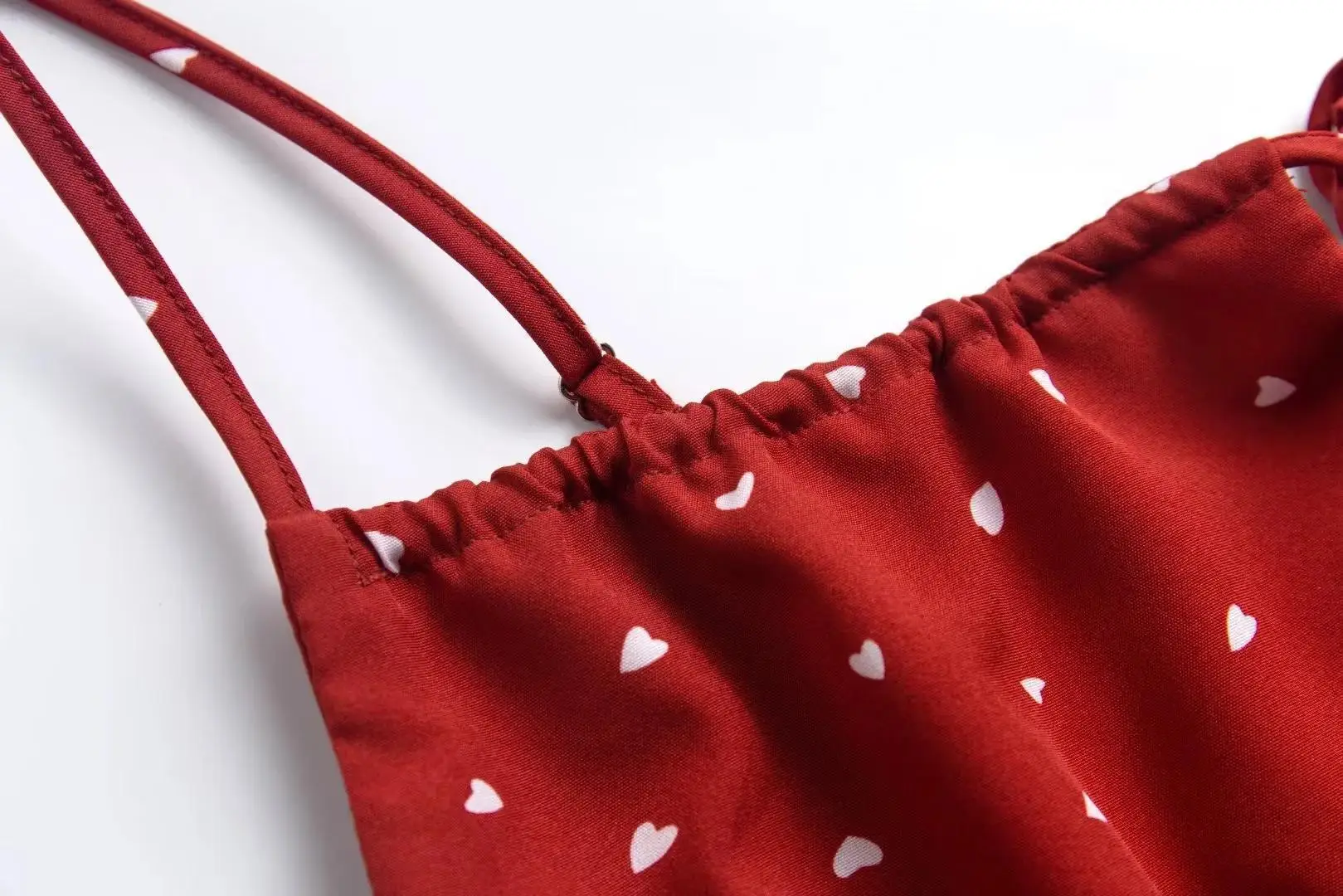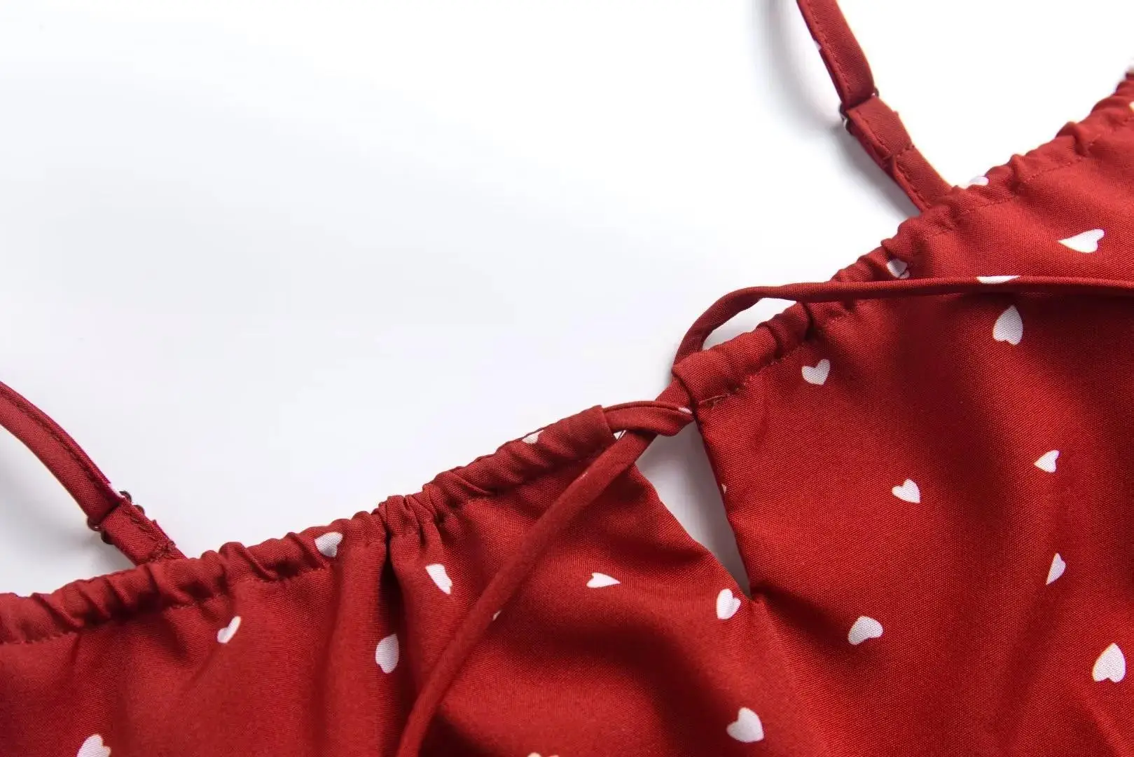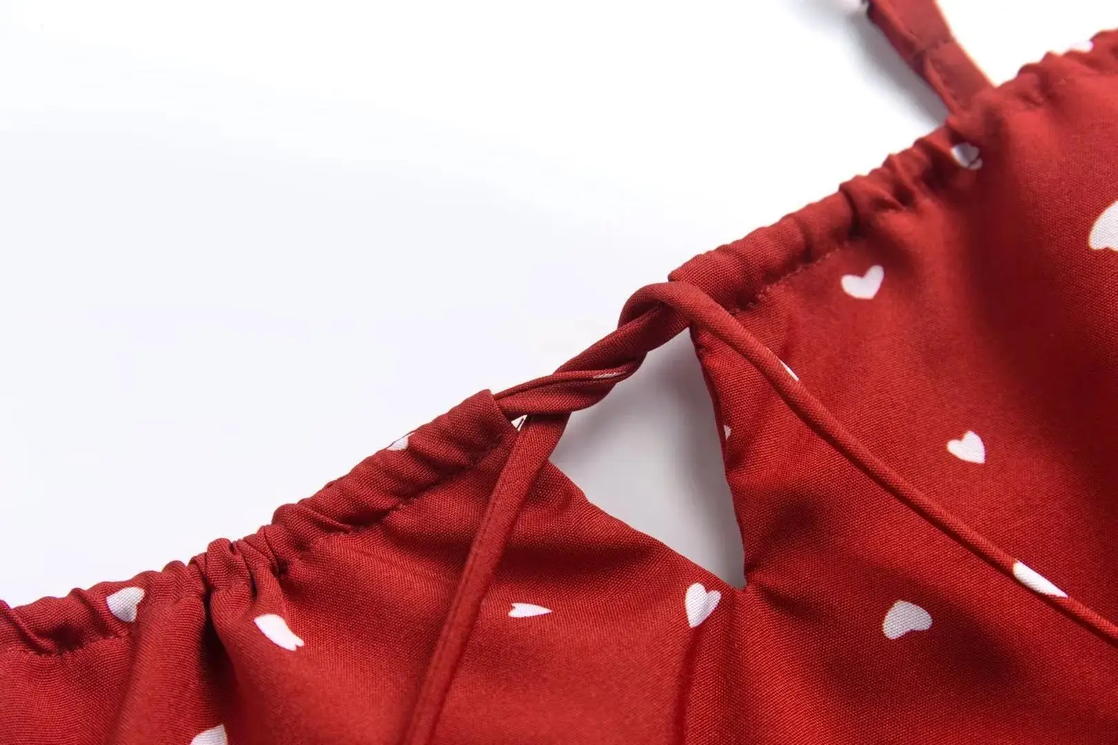 vmtvr Summer Heart Print Red Dress Women Camisole Backless Mini Drawstring Dresses