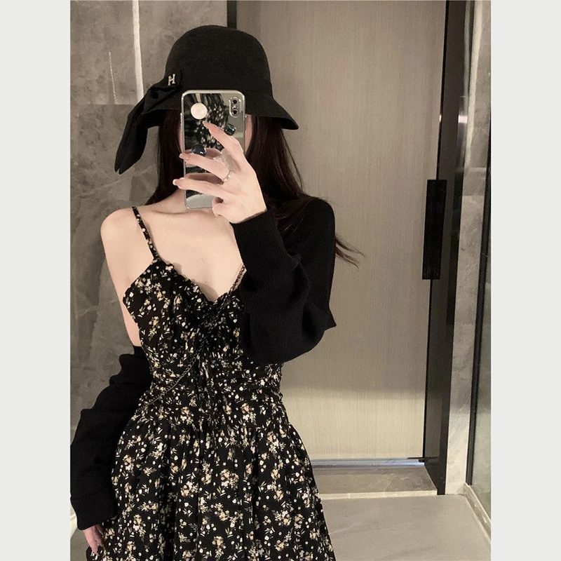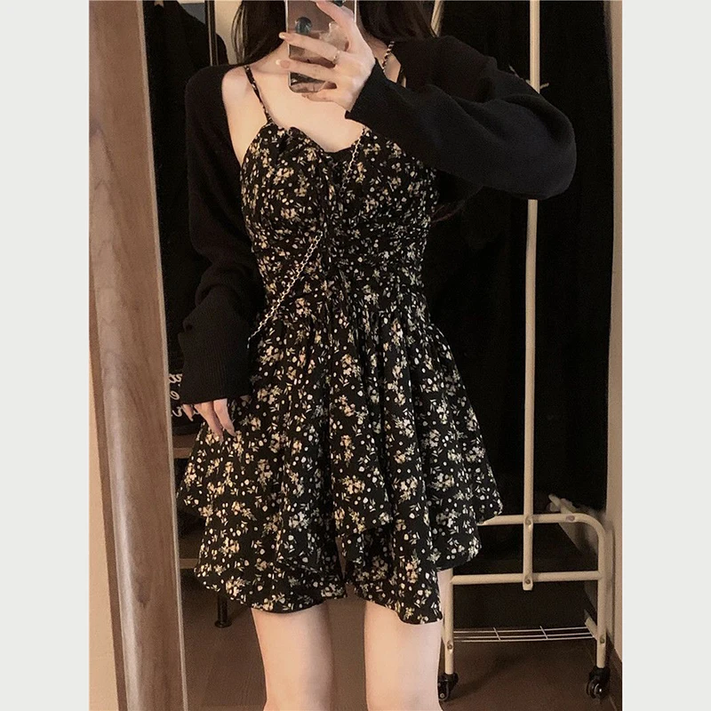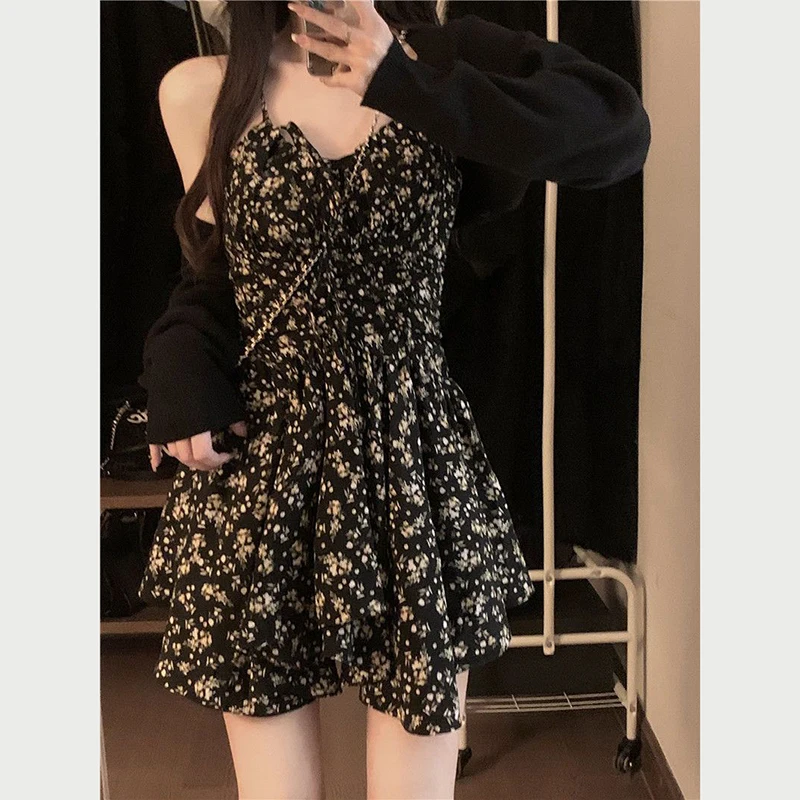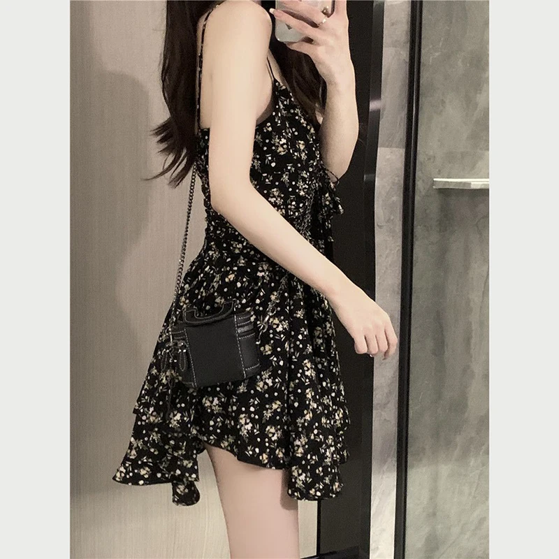 vmtvr Summer High Waist Spaghetti Strap Dress Women Korean Fashion Floral Casual Mini Dresses Y2K Female Elegant A Line Dress