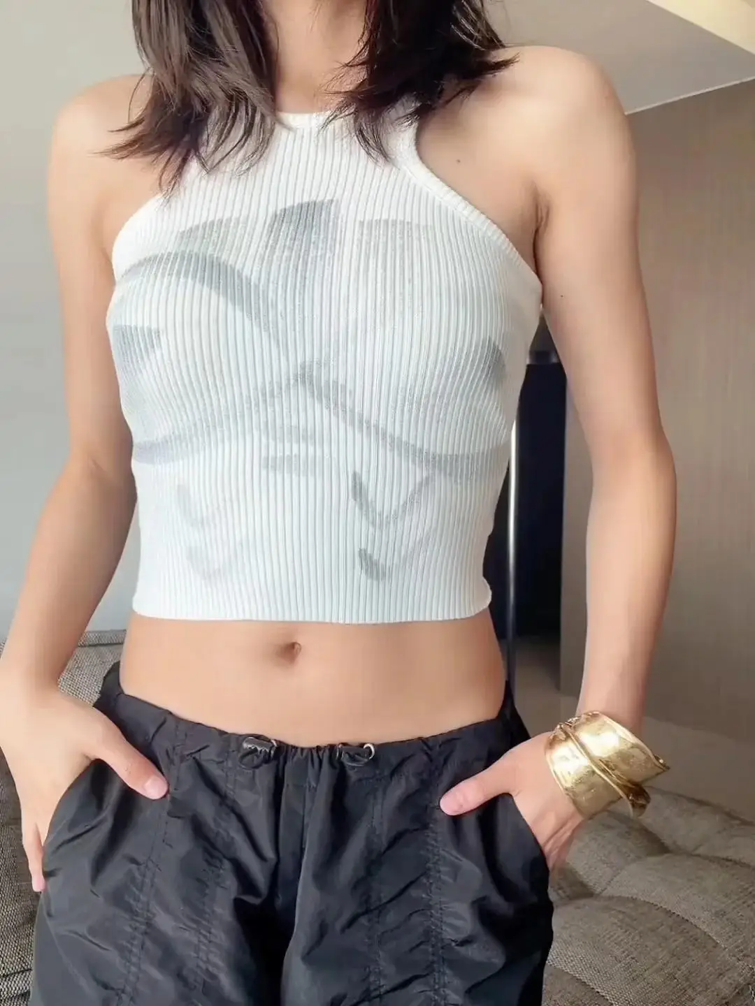 vmtvr Summer Knitted Graffiti Tank Tops Women Elastic Slim Crop Top