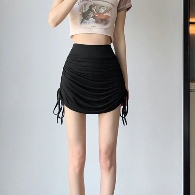 vmtvr Summer Sexy High Waist Skirt Women Fashion Drawstring Folds Mini Skirts Y2K Female Casual Streetwear A Line Skirts New