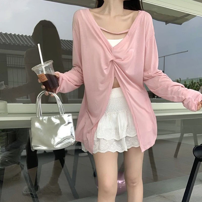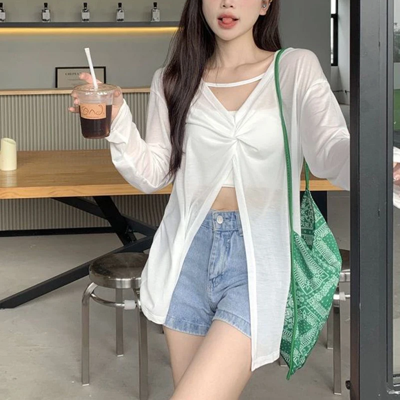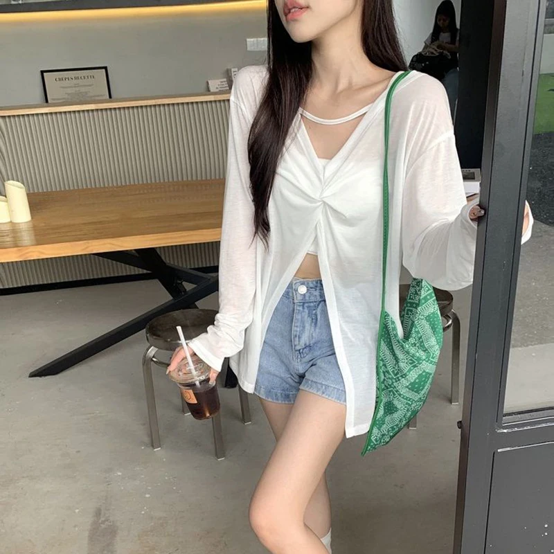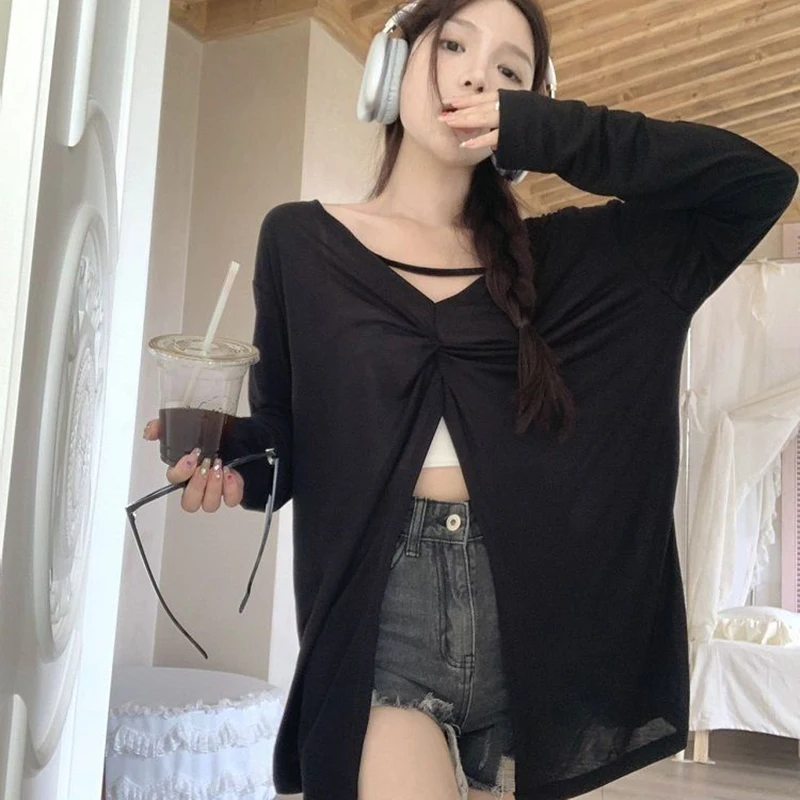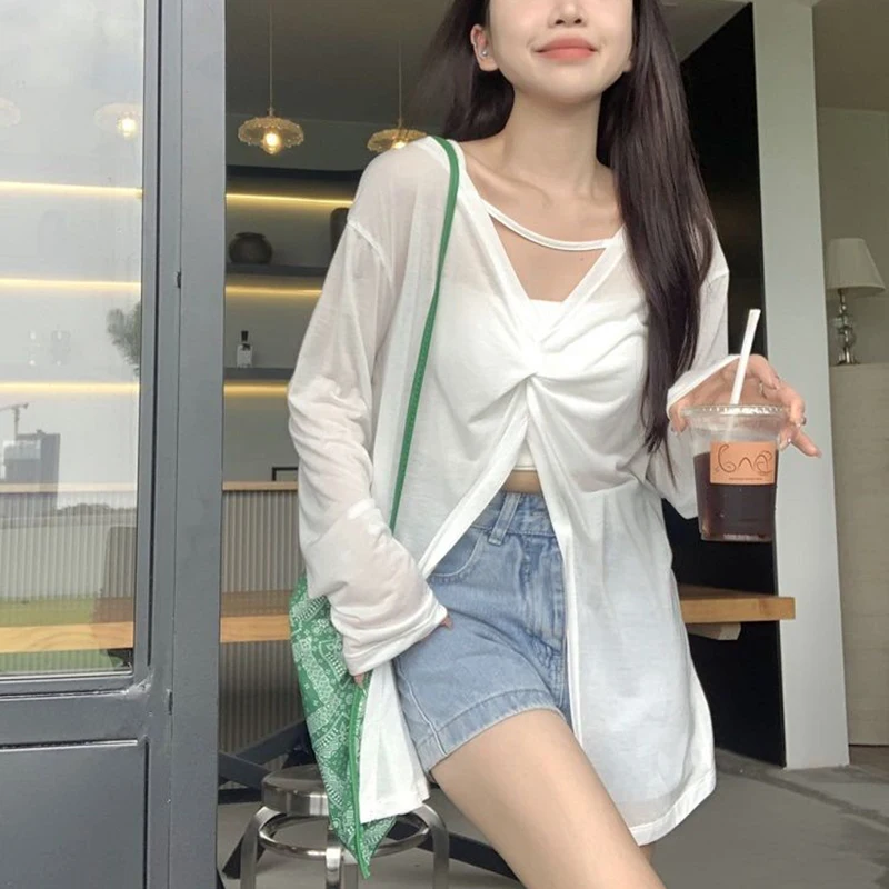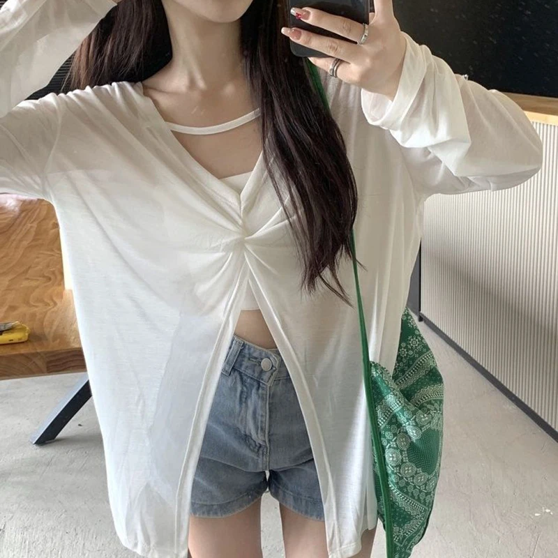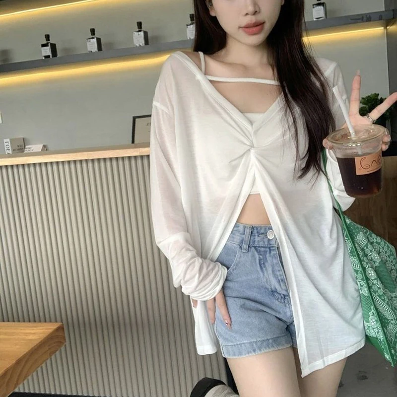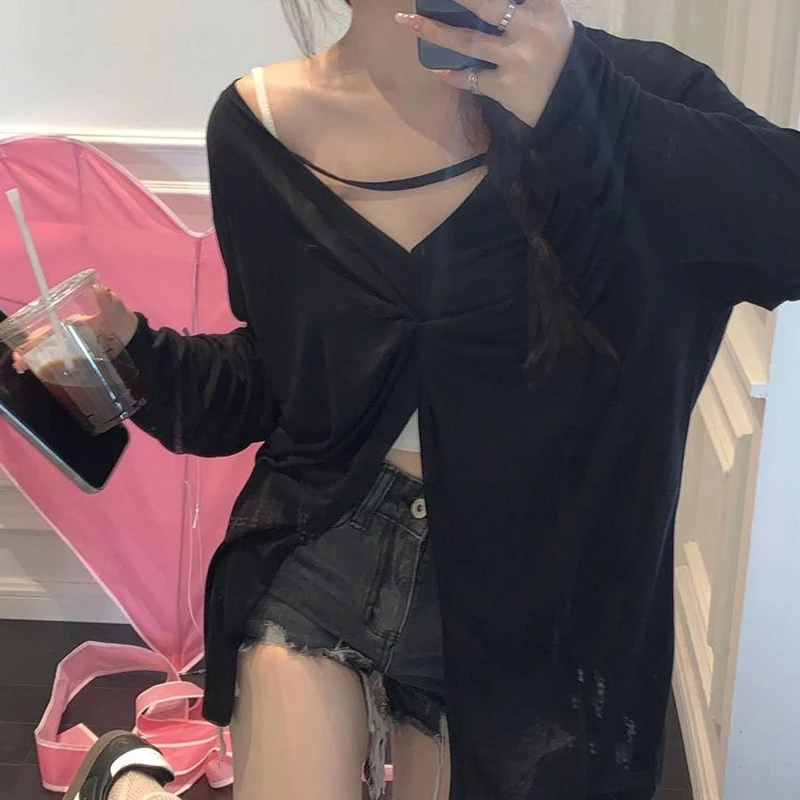 vmtvr Summer Sexy Irregular T Shirt Women Korean Fashion Loose Sun Protection Shirts Casual Streetwear Female All Match Tops New