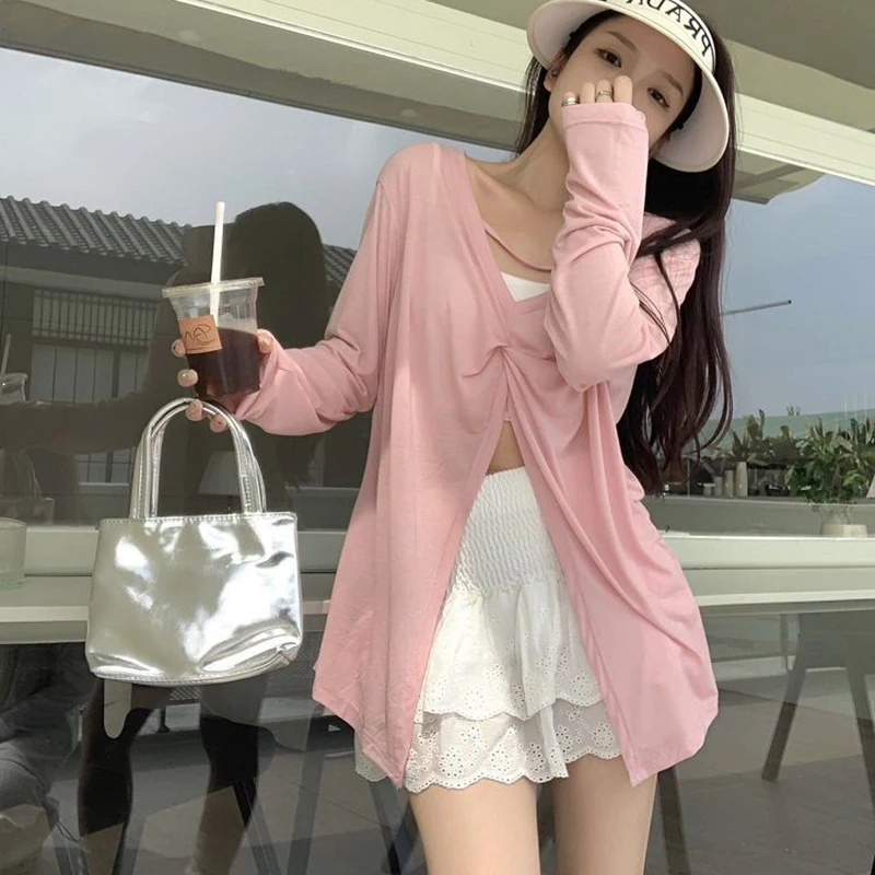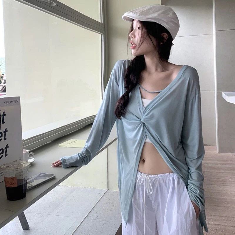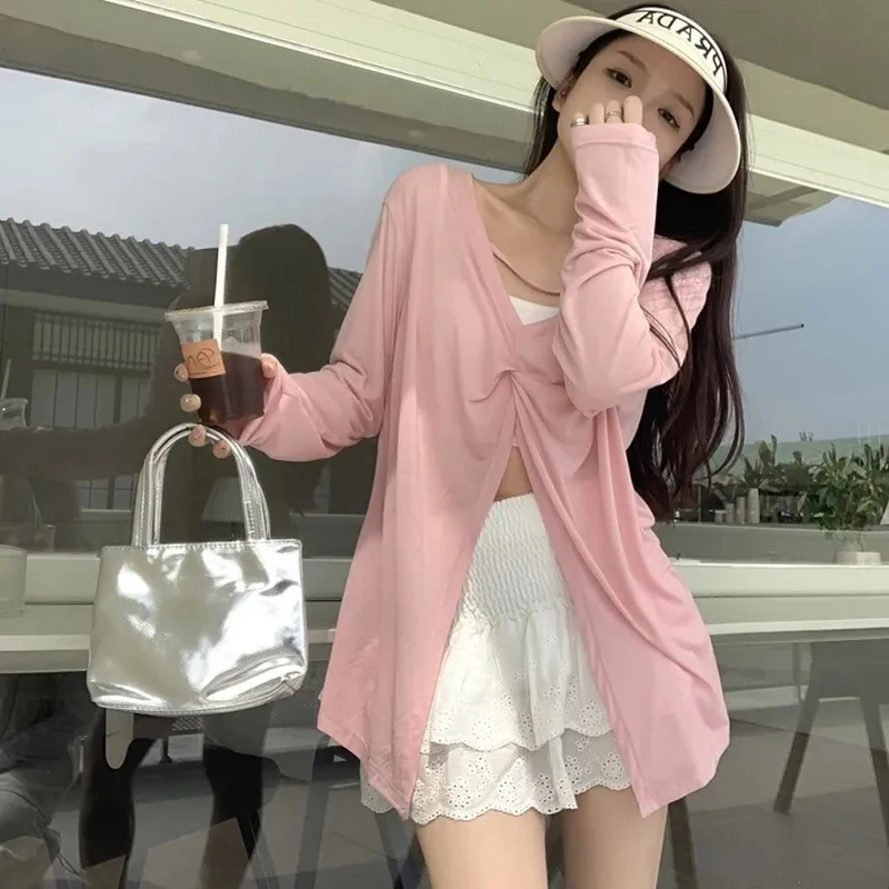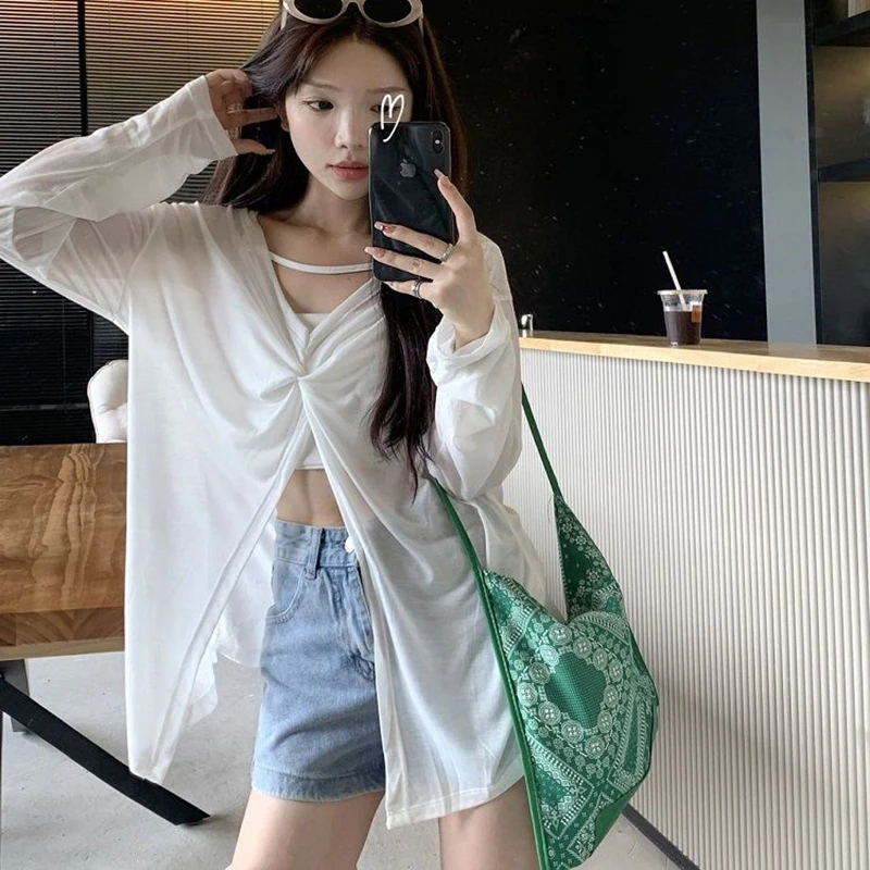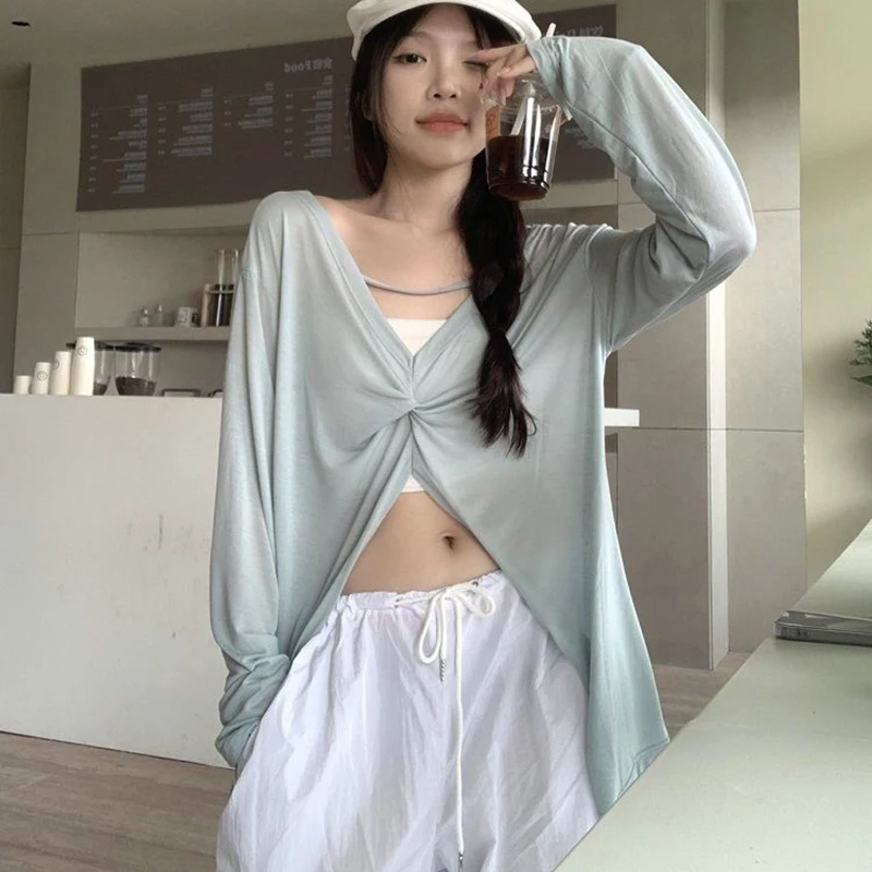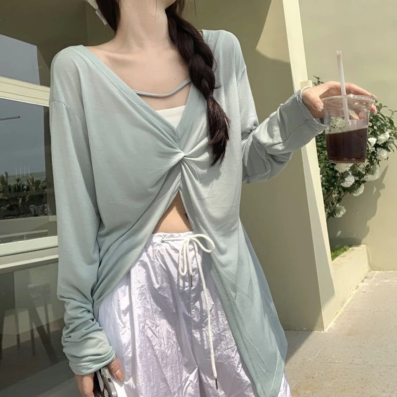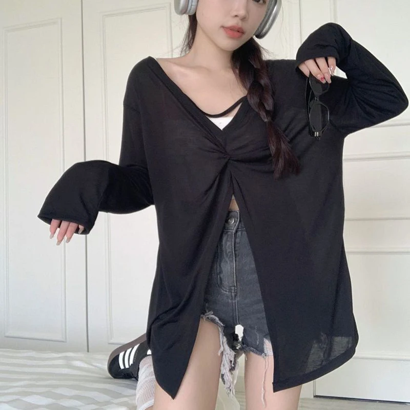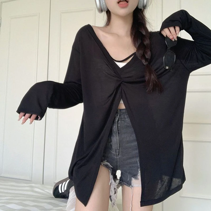 vmtvr Summer Sexy Irregular T Shirt Women Korean Fashion Loose Sun Protection Shirts Casual Streetwear Female All Match Tops New