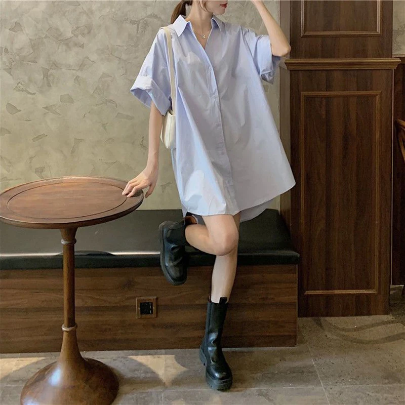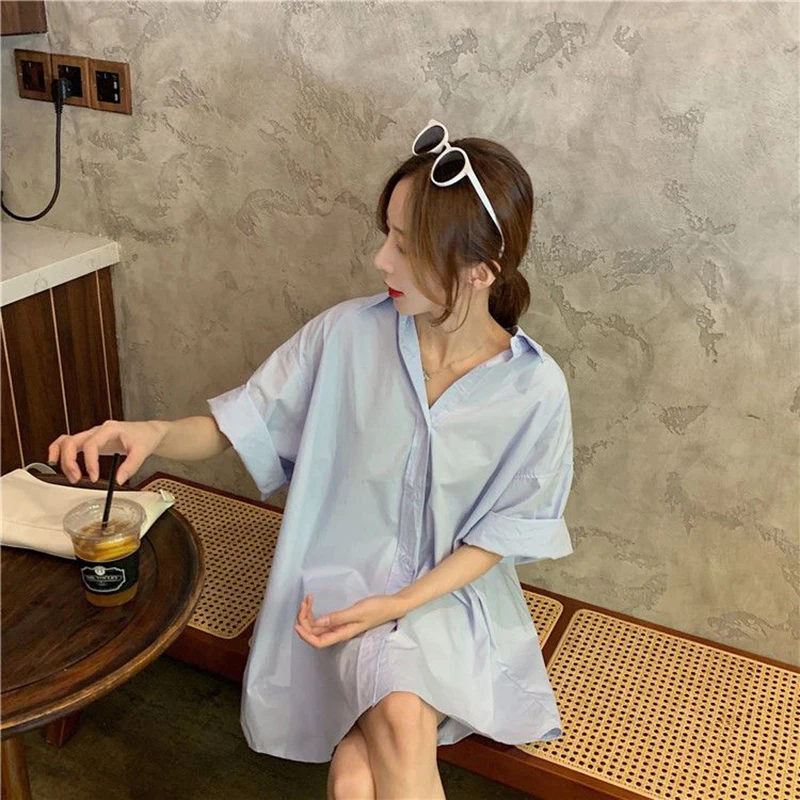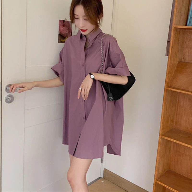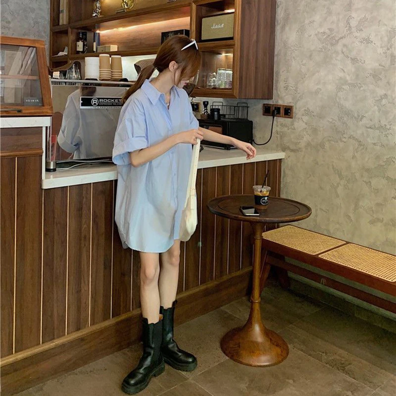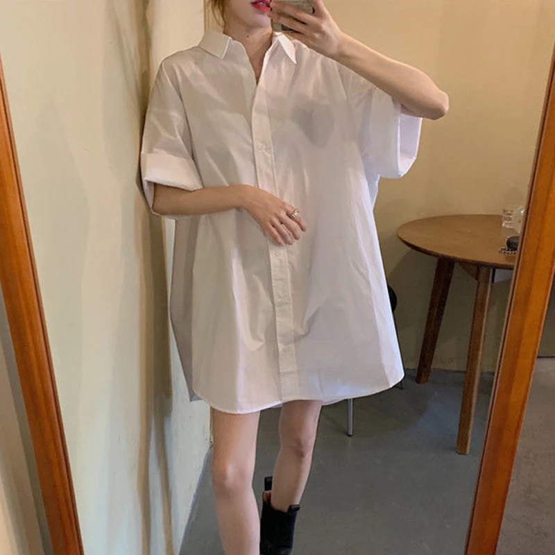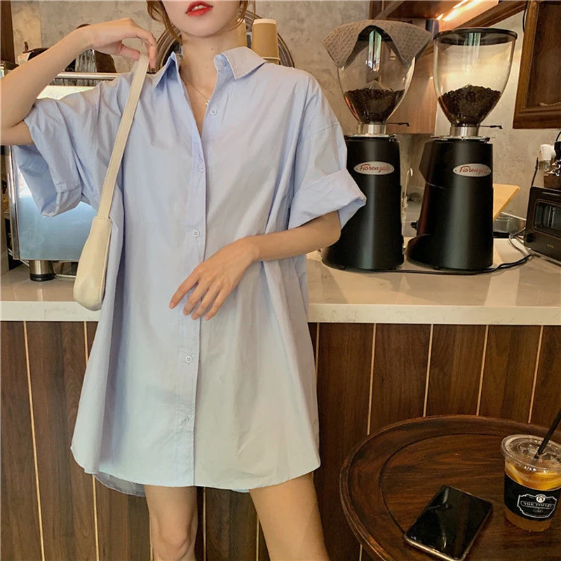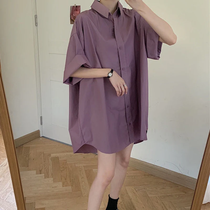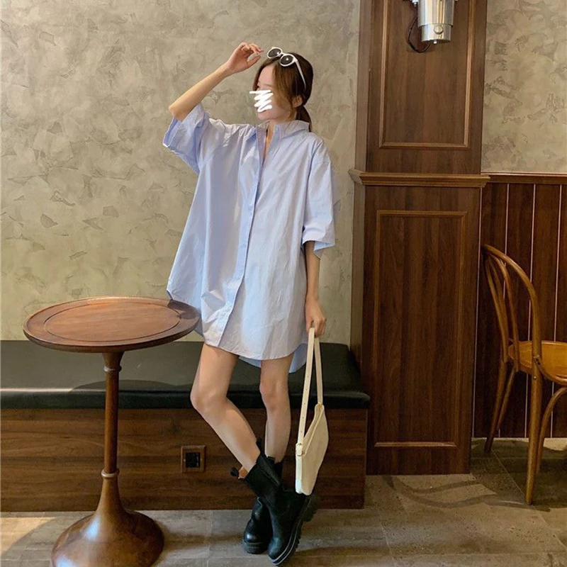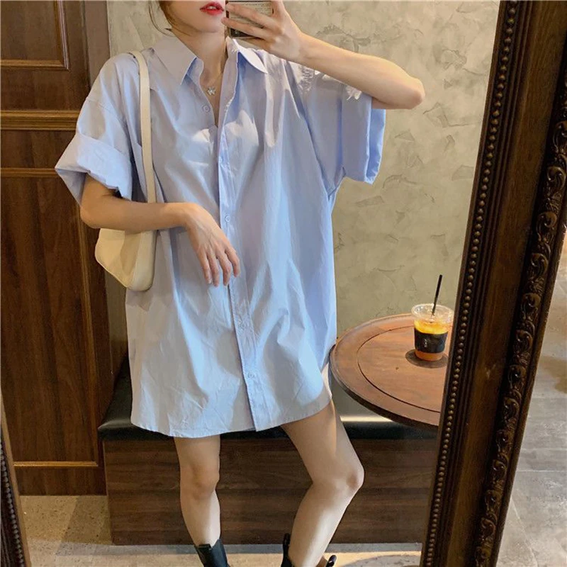 vmtvr Summer Vintage Women Shirts Korean Casual Loose Mid Length Shirts Y2K Female Bf All Match Short Sleeve Tops New