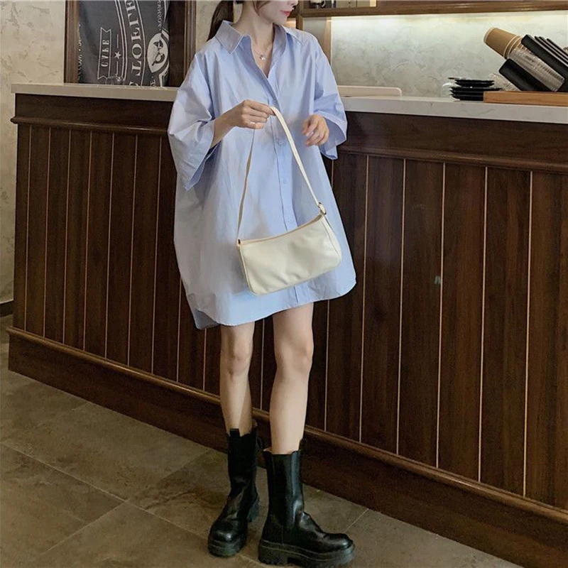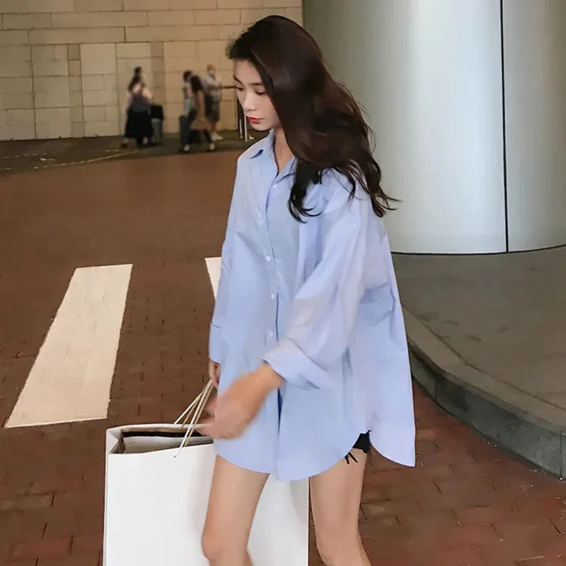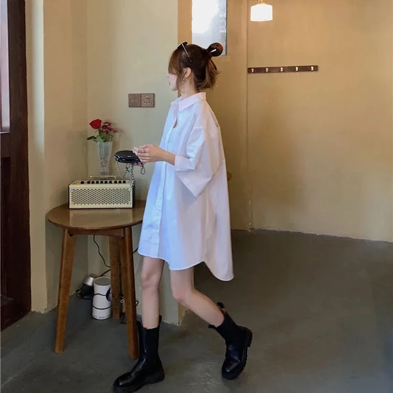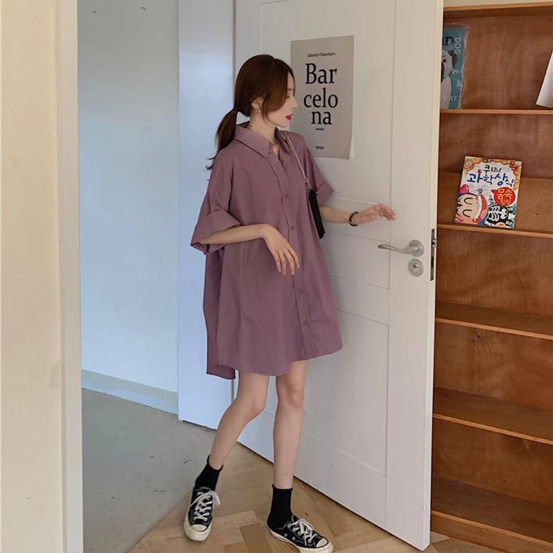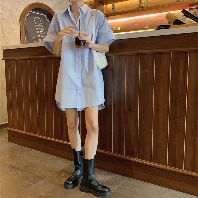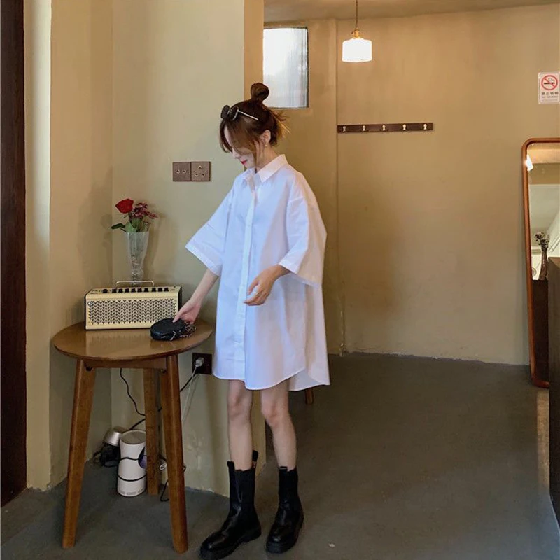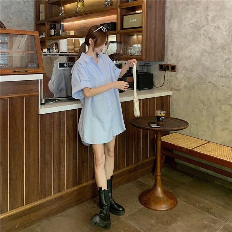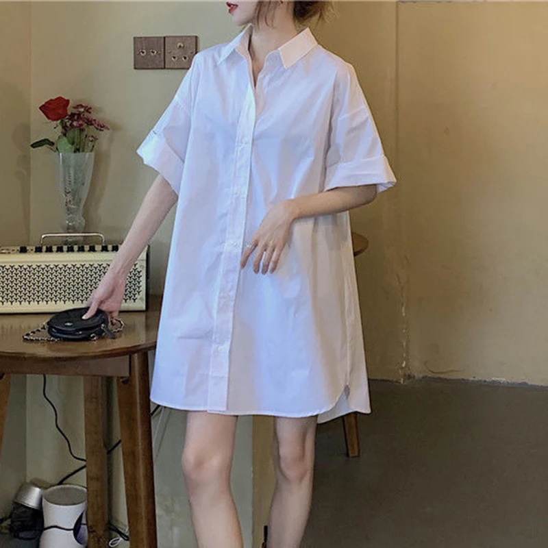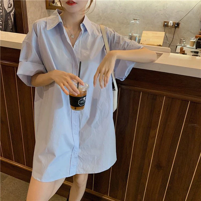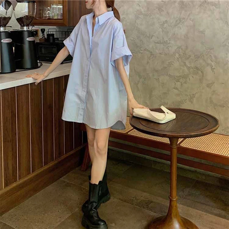 vmtvr Summer Vintage Women Shirts Korean Casual Loose Mid Length Shirts Y2K Female Bf All Match Short Sleeve Tops New