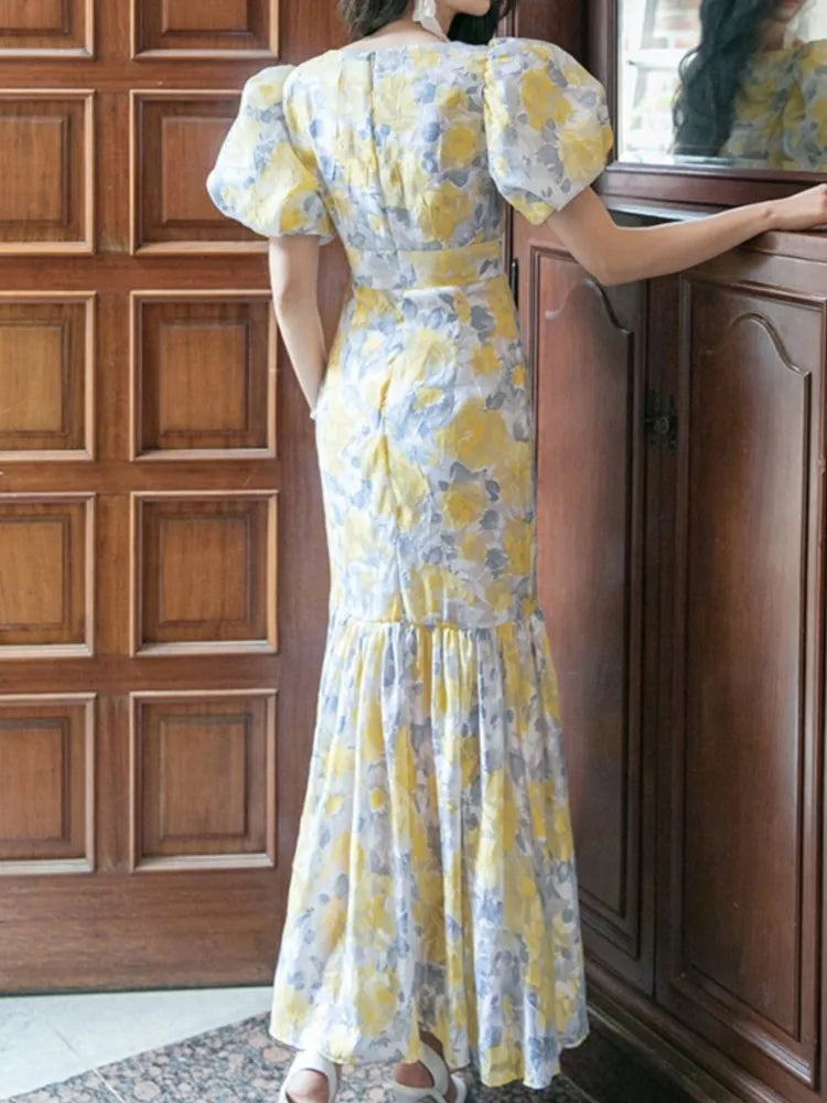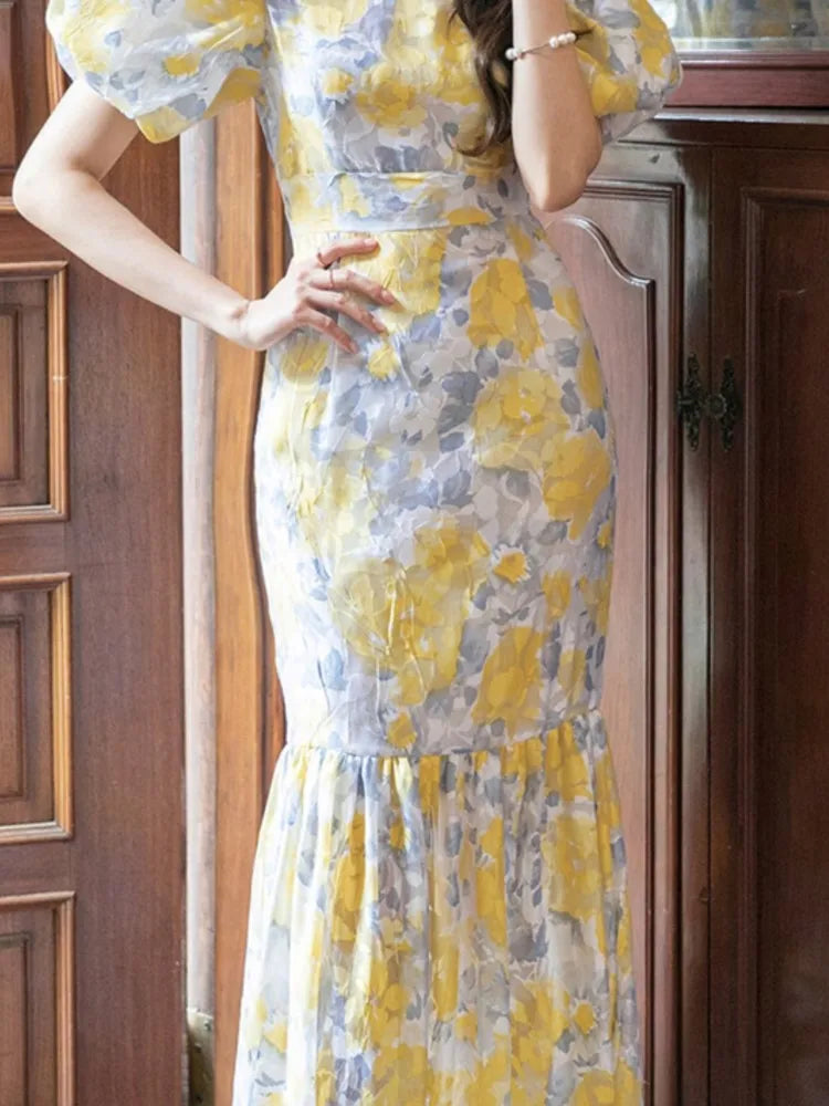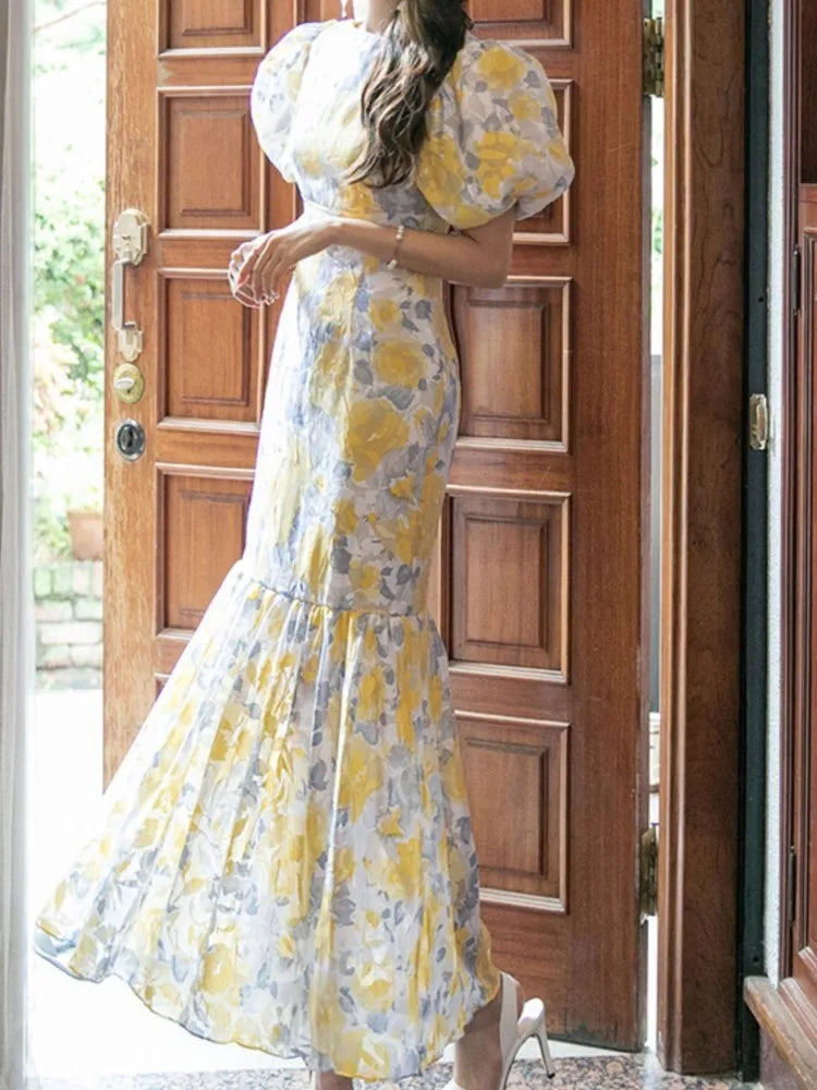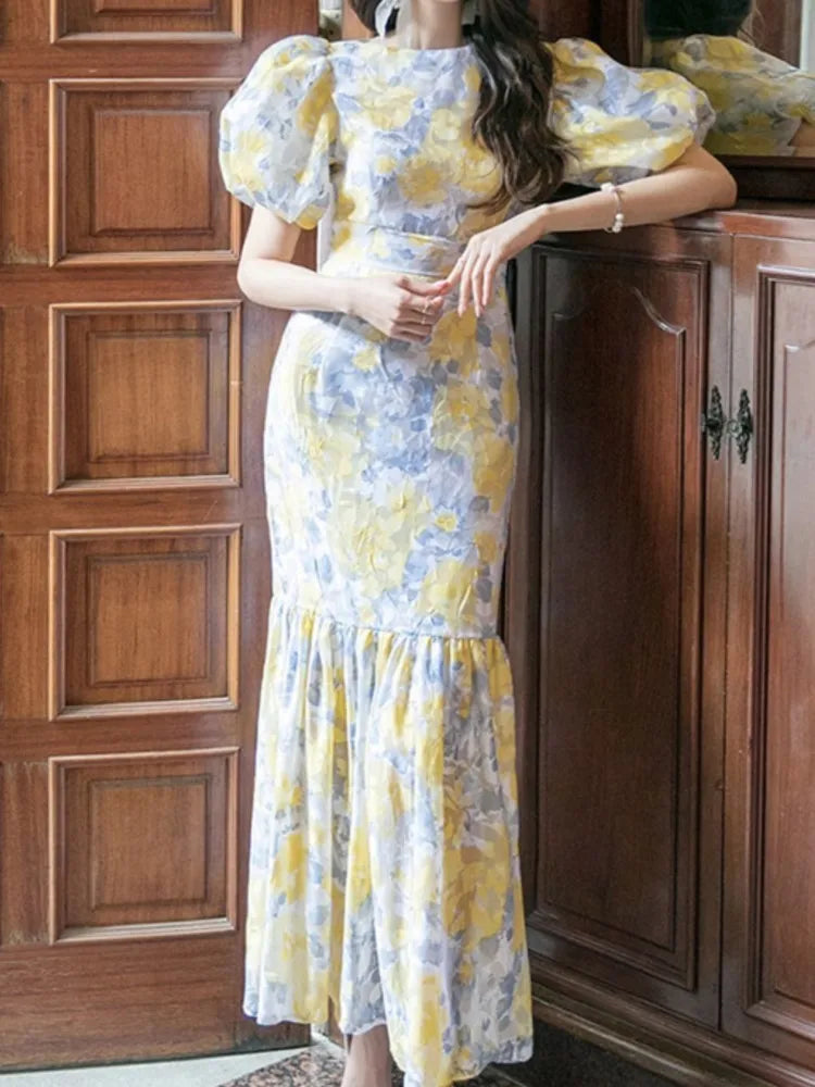 vmtvr Summer Women Fashion Elegant Print Long Dress Vintage Chic Bodycon Slim Party Birthday Clothes Female Evening Clothes Robe New
