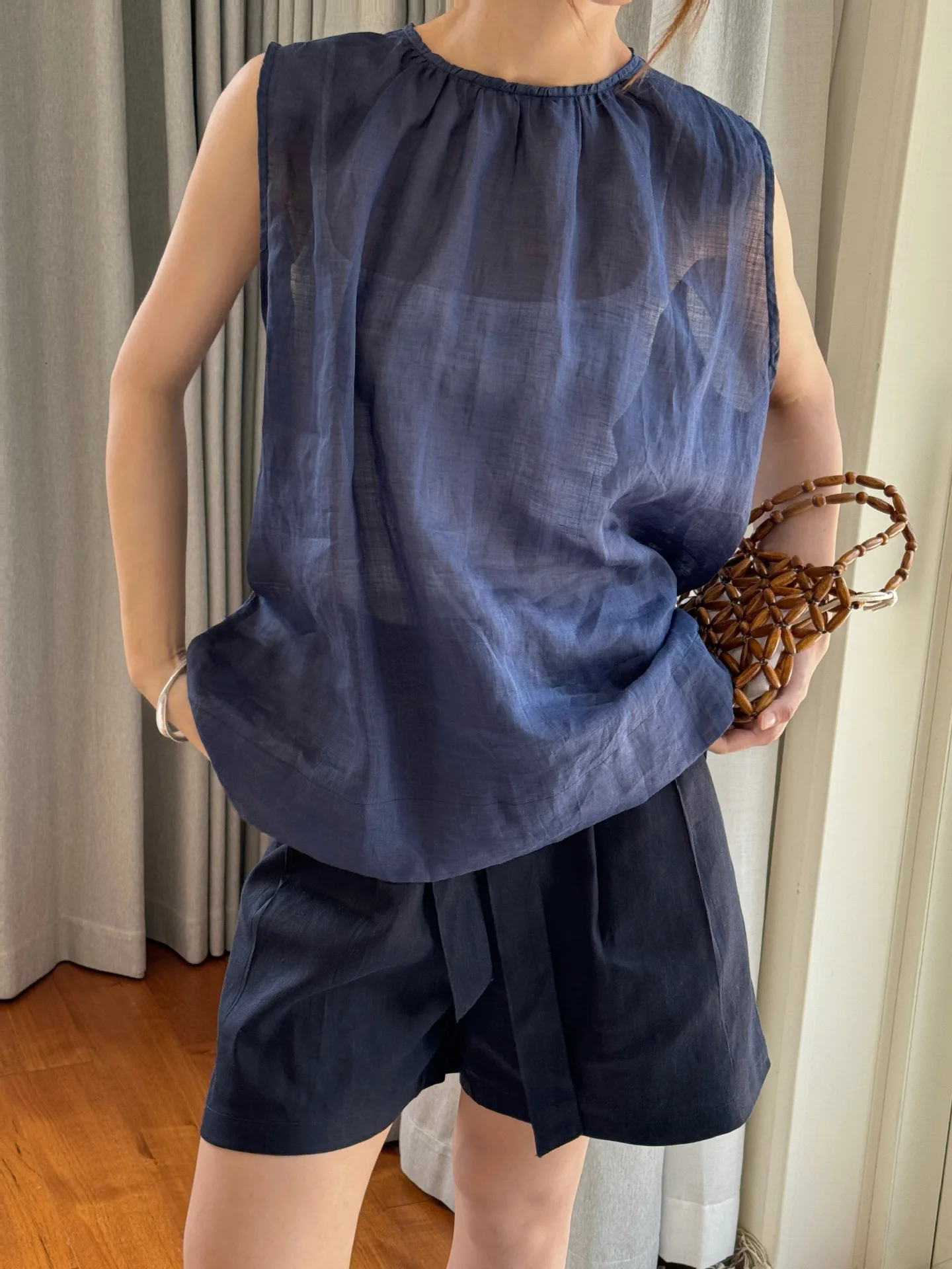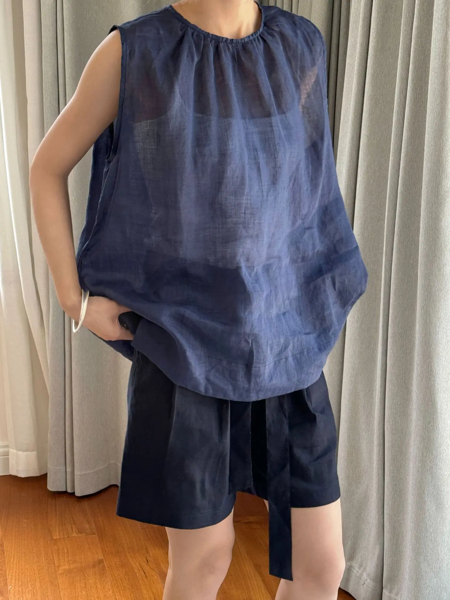 vmtvr Summer Women's Casual Solid Round Neck Loose Tank Top