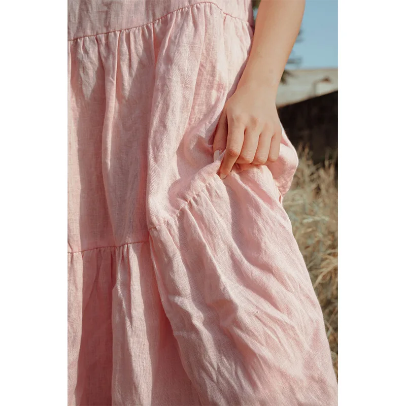 vmtvr Vinatge Summer Cotton Linen Women's Dresses Solid Sleeveless Ruffles Sweat Korean Harajuku Party Club Cake Dress Vestidos