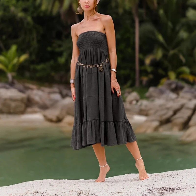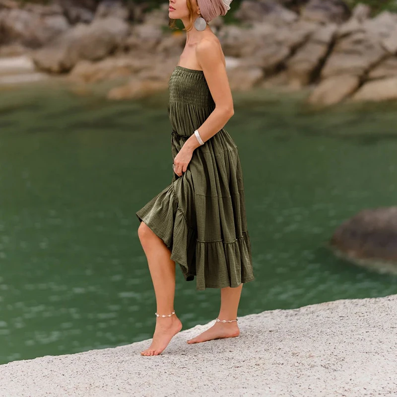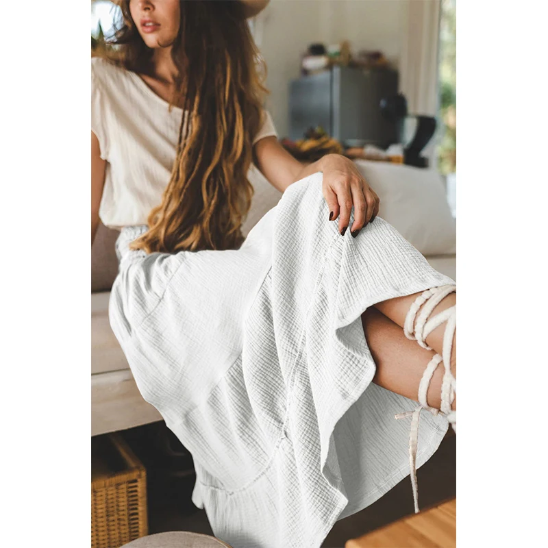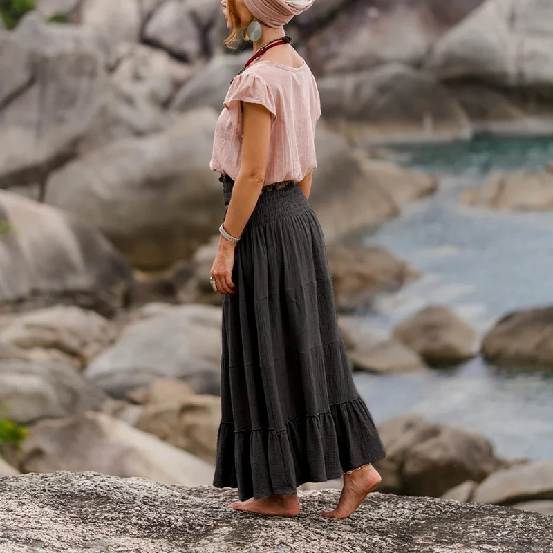 vmtvr Vintage Chic 100% Cotton Gauze Skirts For Women Summer Long Elastic High Waist Elegant Casual Loose Streetwear Skirt