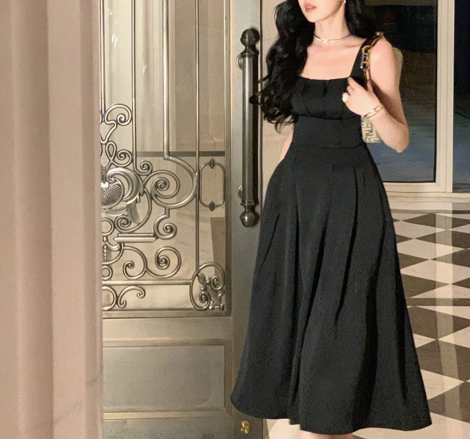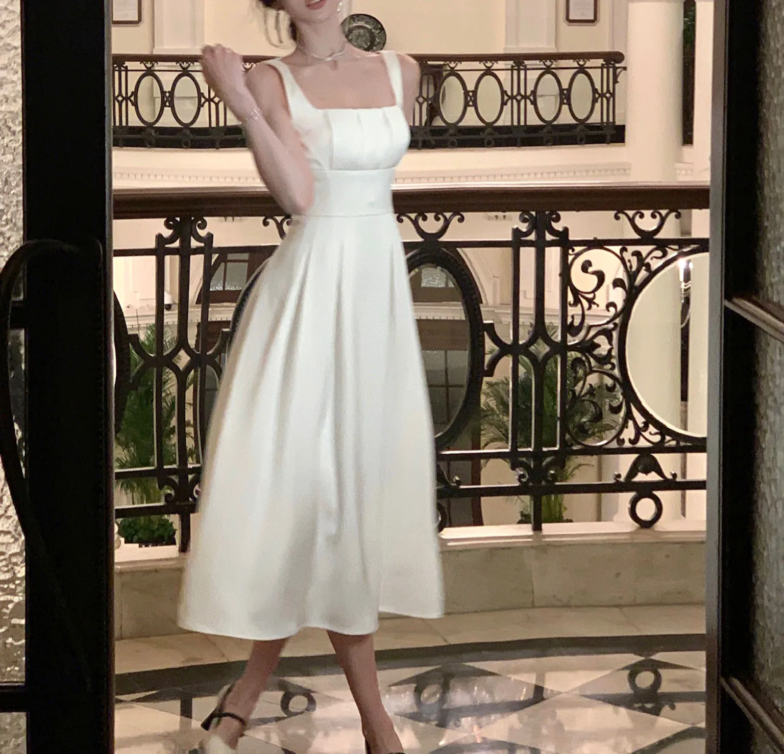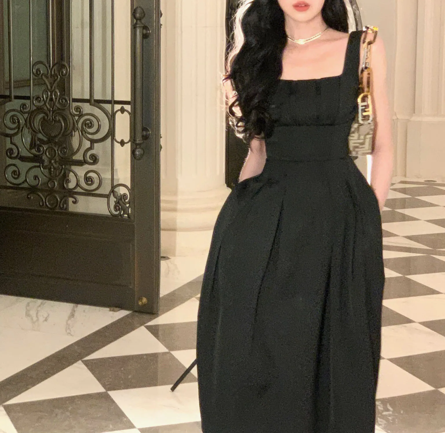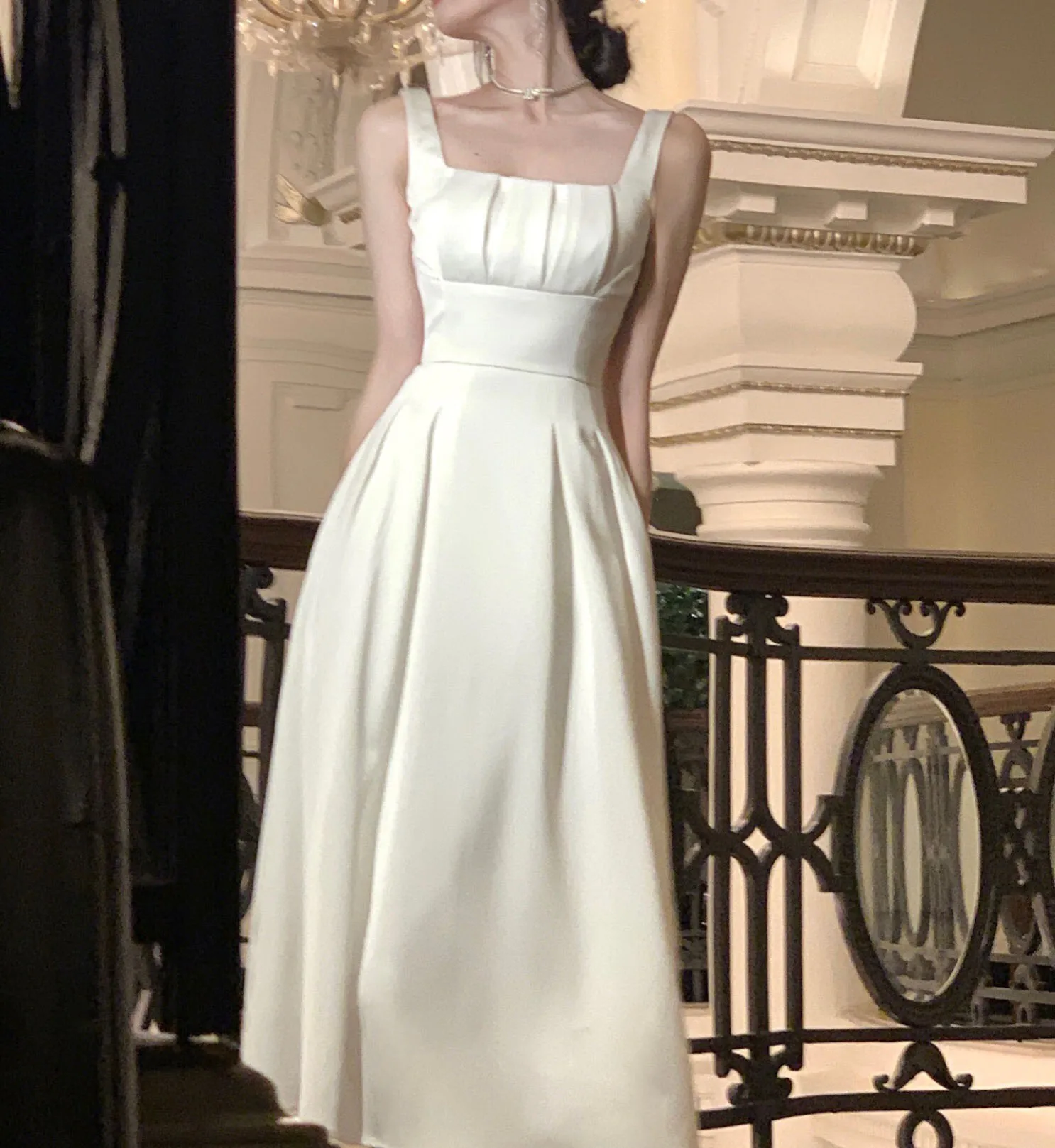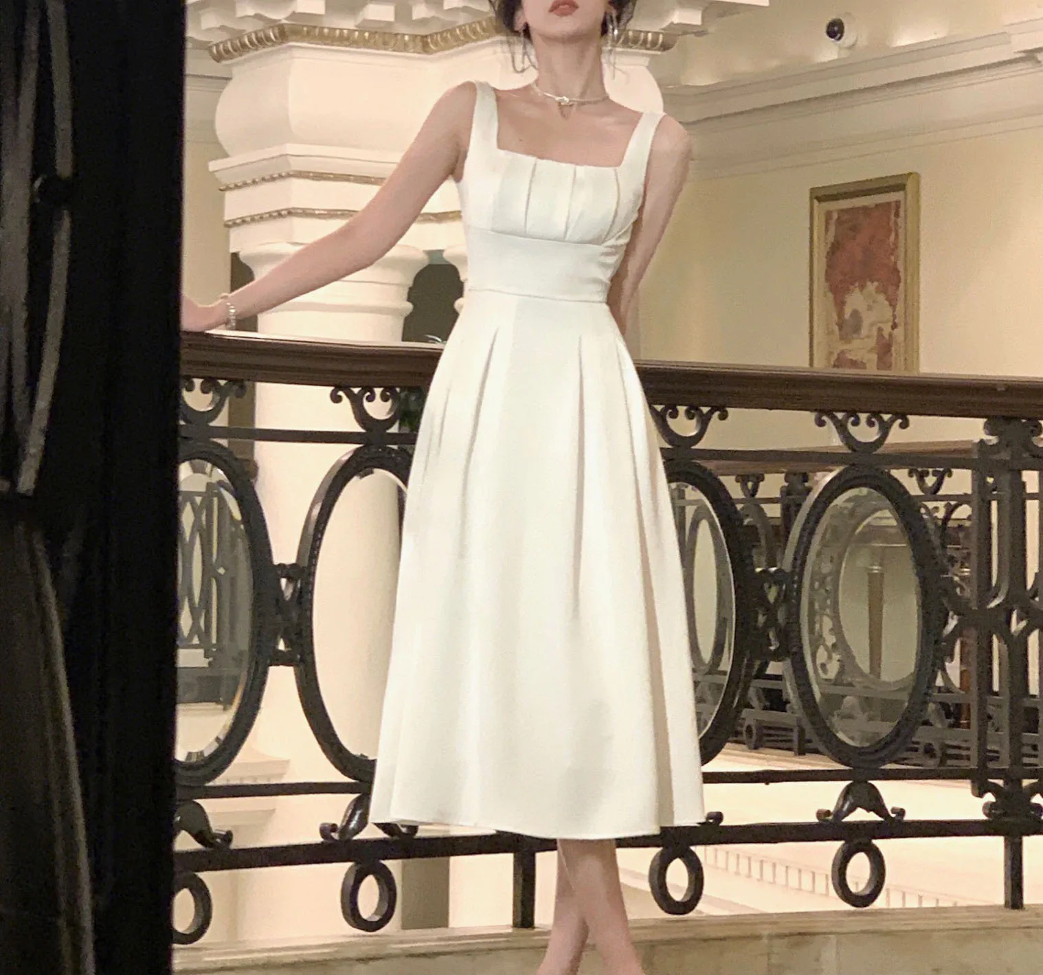 vmtvr Vintage Elegant Dress for Women Sleeveless Square Collar Spaghetti Strap Fashion Party Evening French Dress New Summer