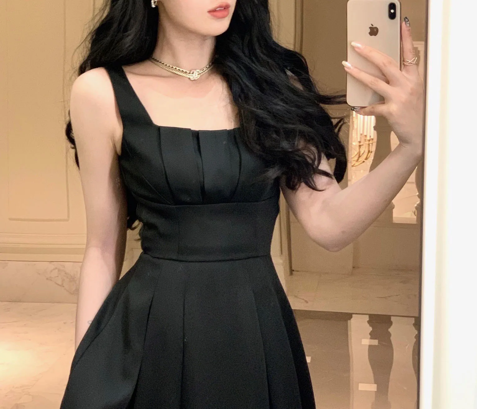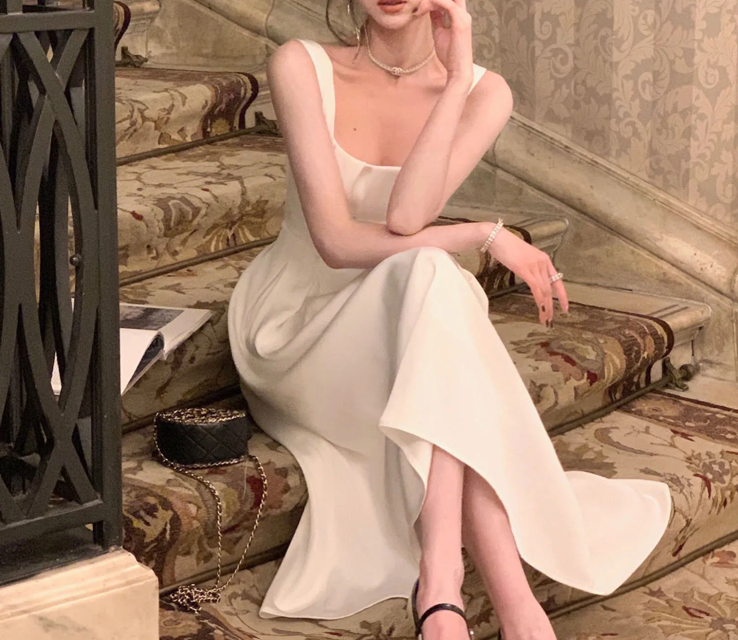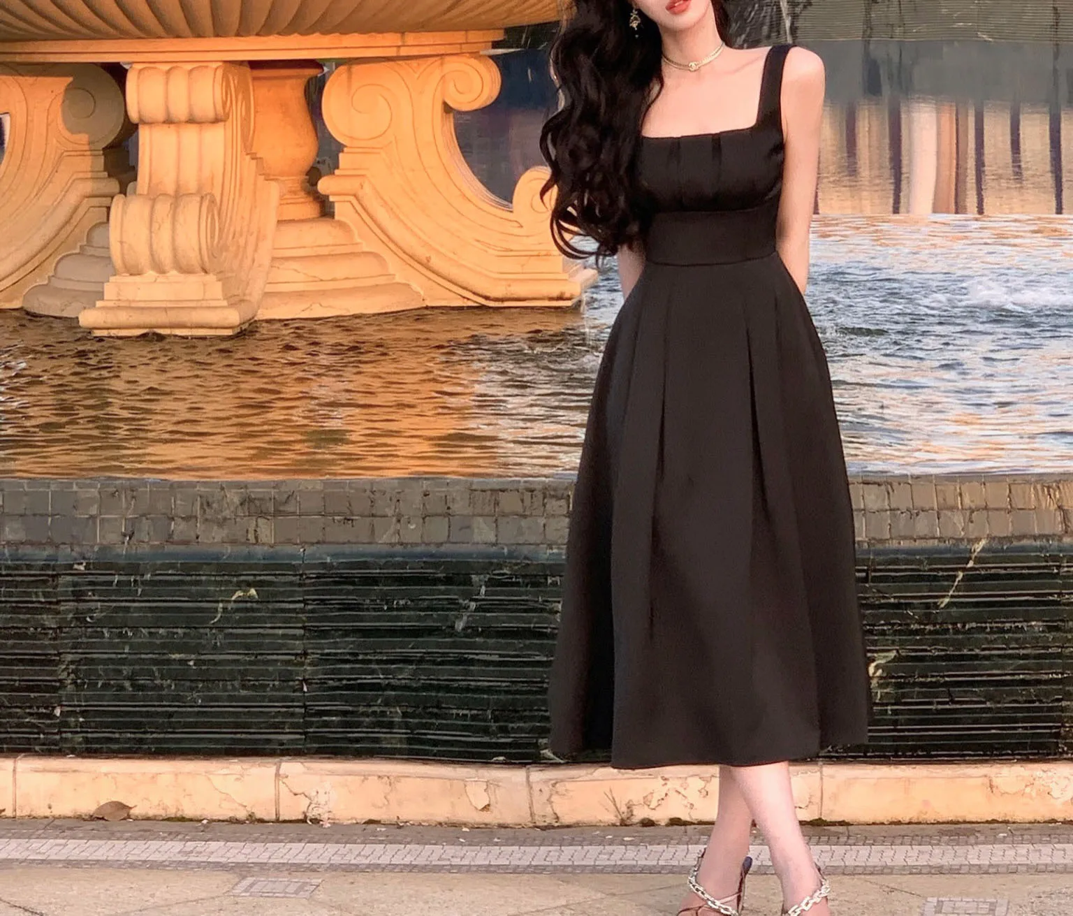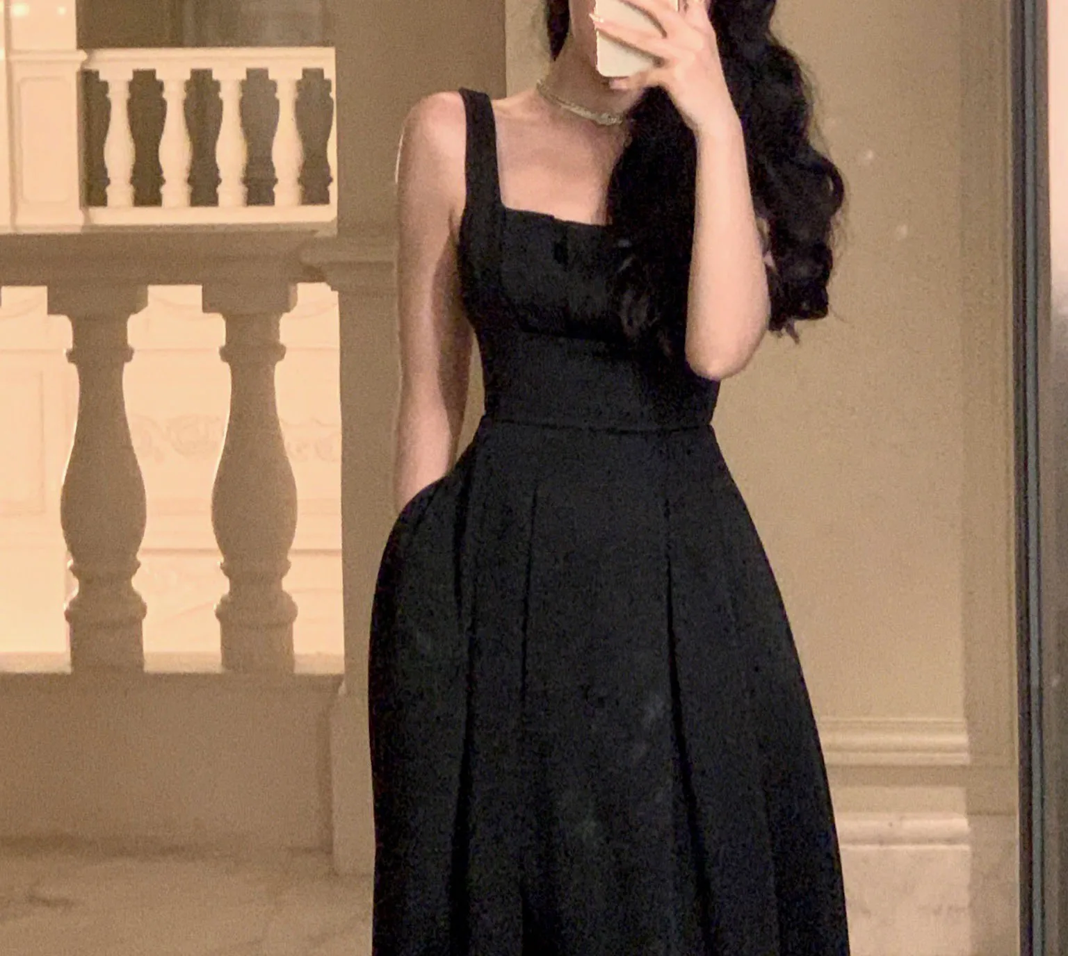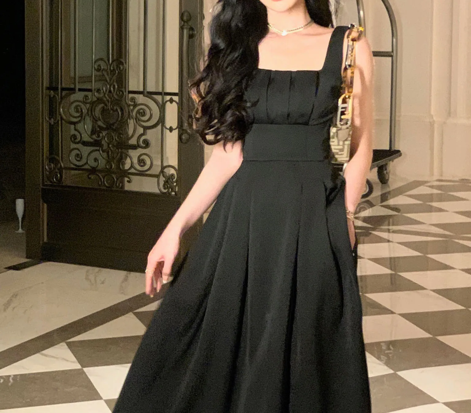 vmtvr Vintage Elegant Dress for Women Sleeveless Square Collar Spaghetti Strap Fashion Party Evening French Dress New Summer