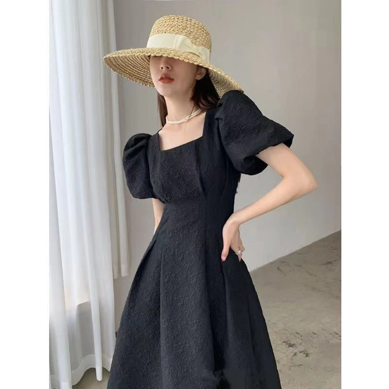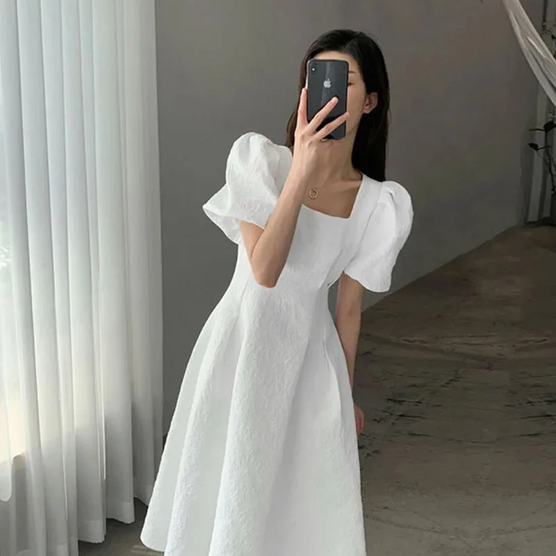 vmtvr Vintage Elegant women Dress Korean casual folds midi Dresses Y2K Female Ball Gown Puff Sleeve A line Dress summer new