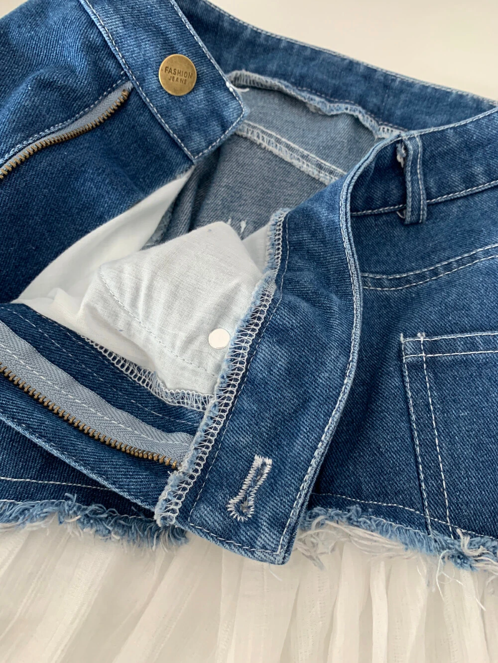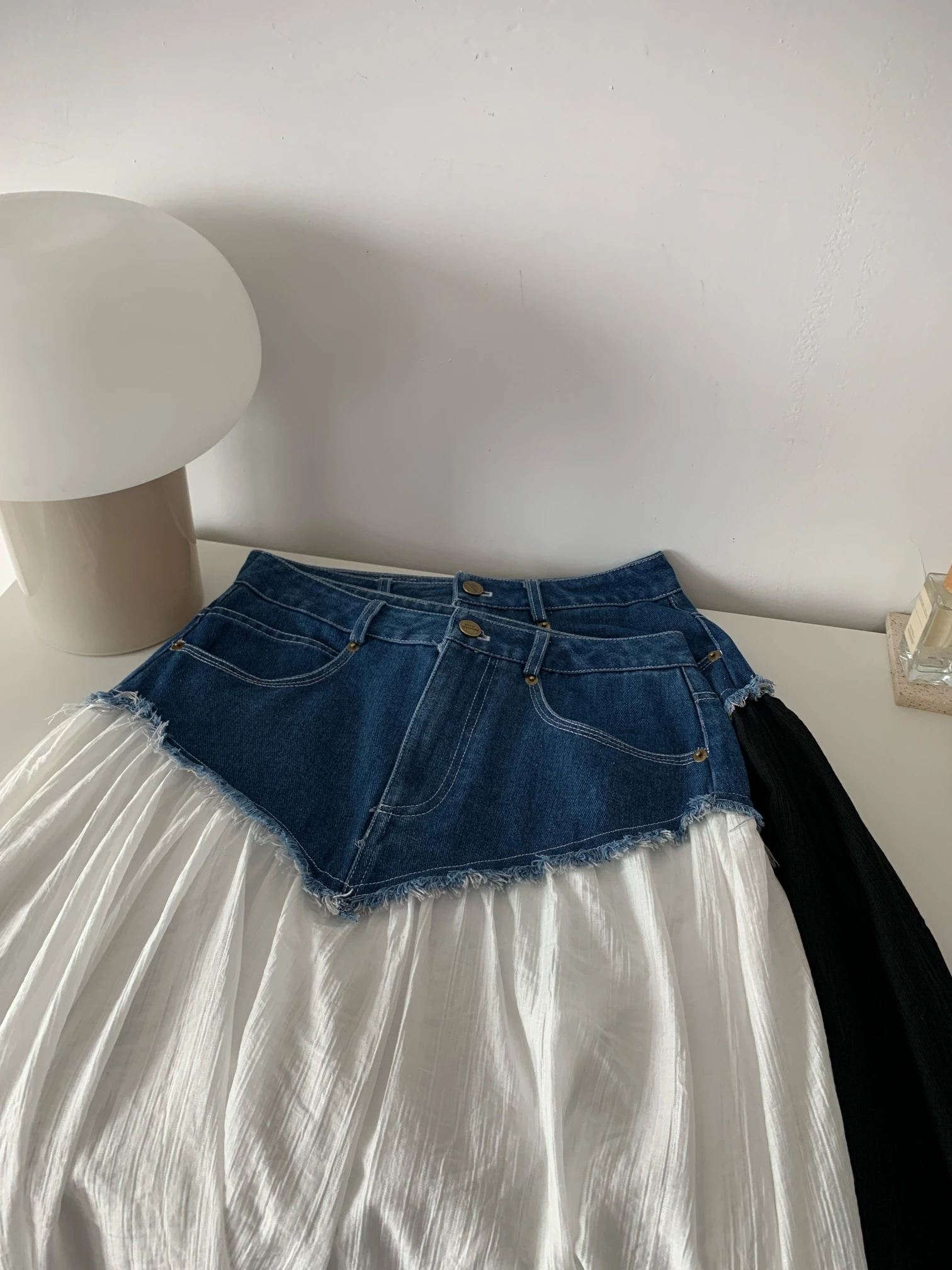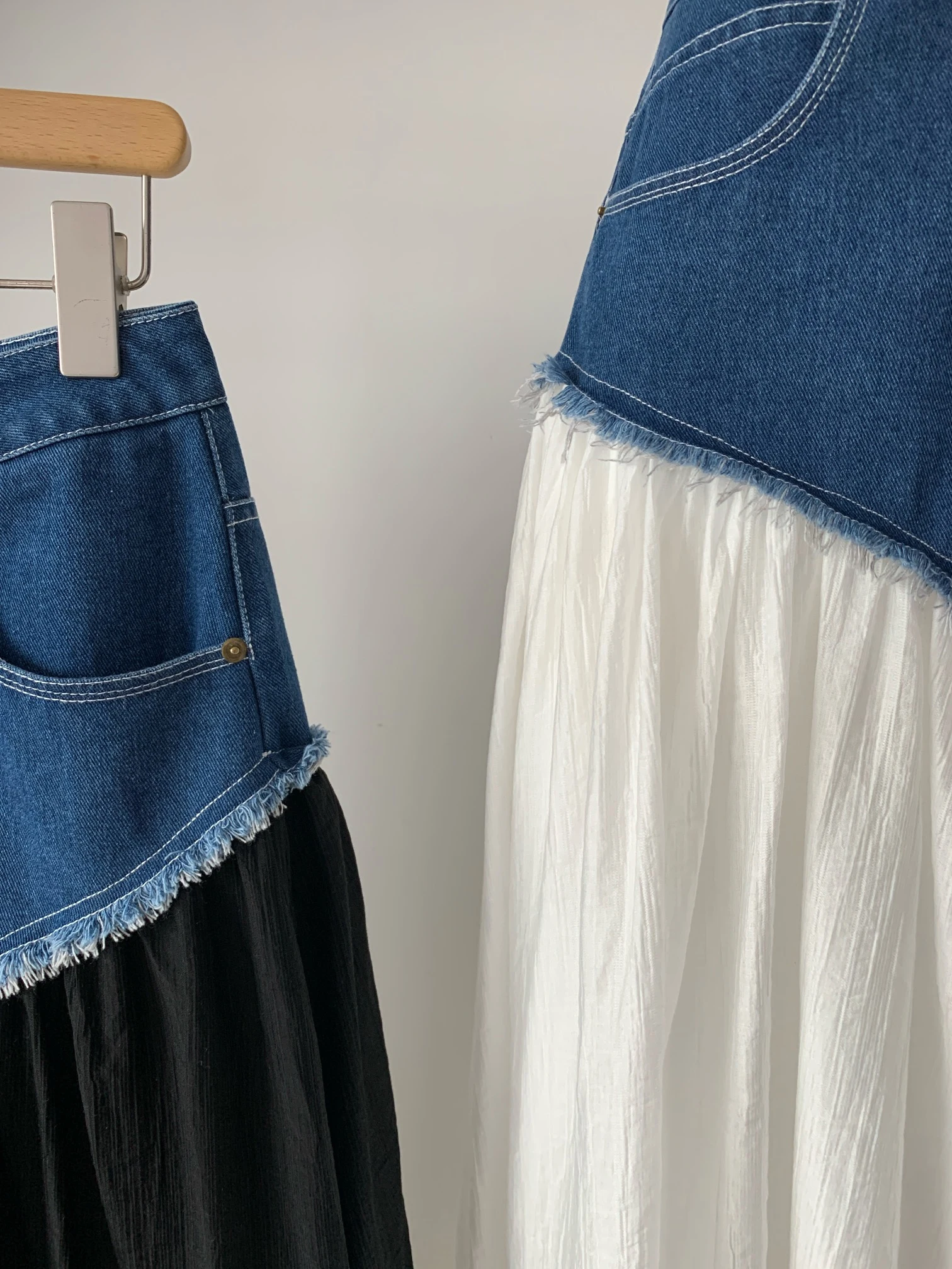 vmtvr Vintage High Waist Ladies Pockets White Long Patchwork A-line Jeans Skirts 2024 Summer Autumn Women Denim Midi Skirts