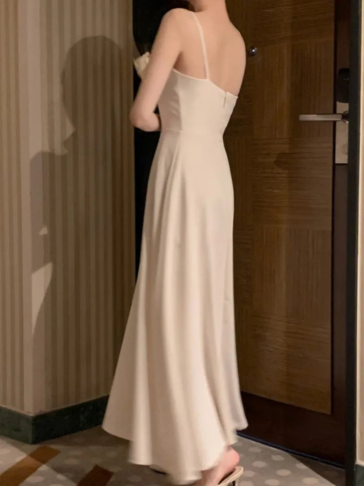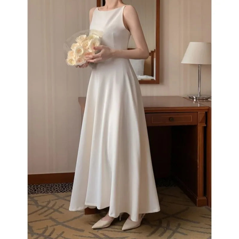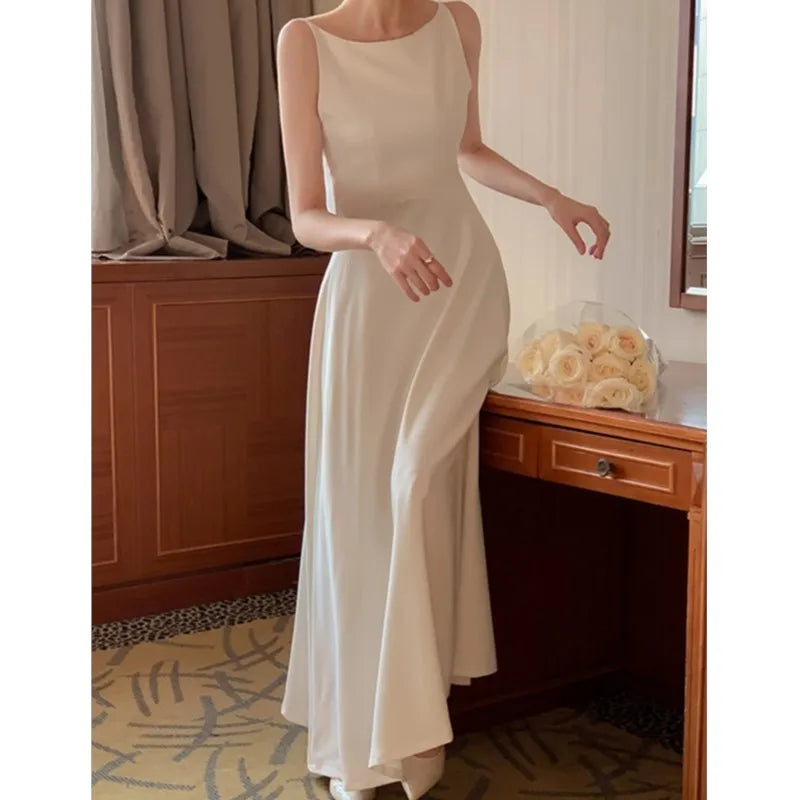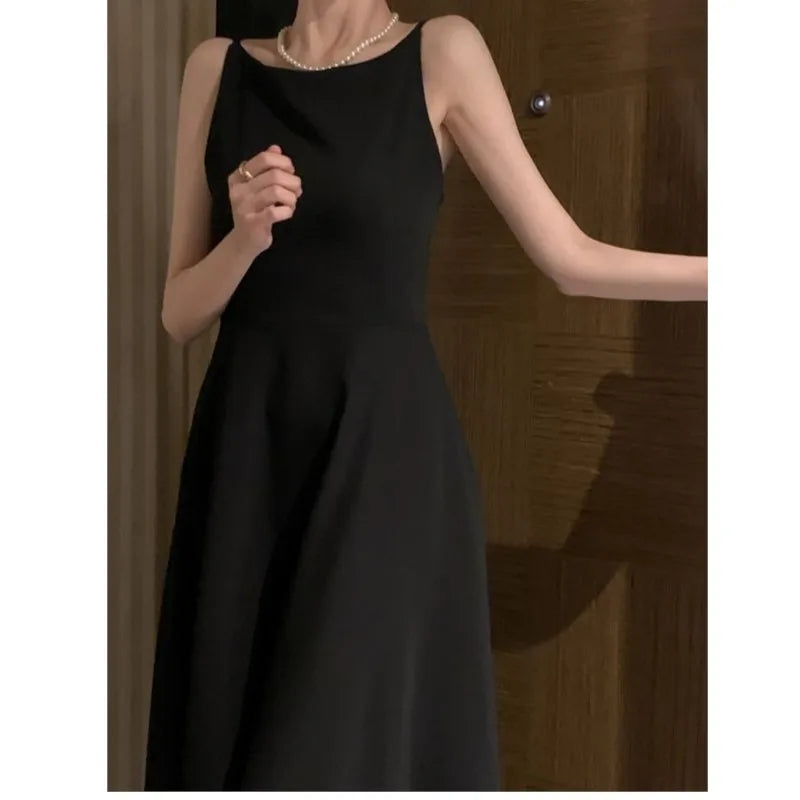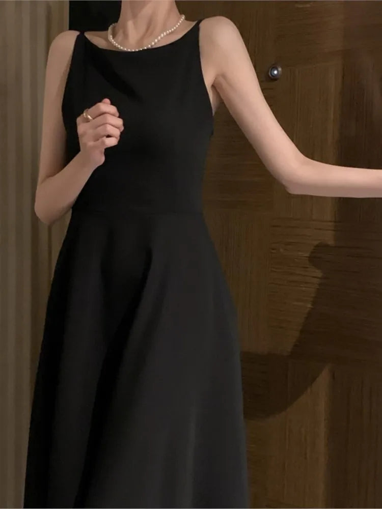 vmtvr Vintage Women Midi Dress For Wedding Summer Elegant Strap Lady Vestidos A-line Clothes French Party Slim Solid Female Robe