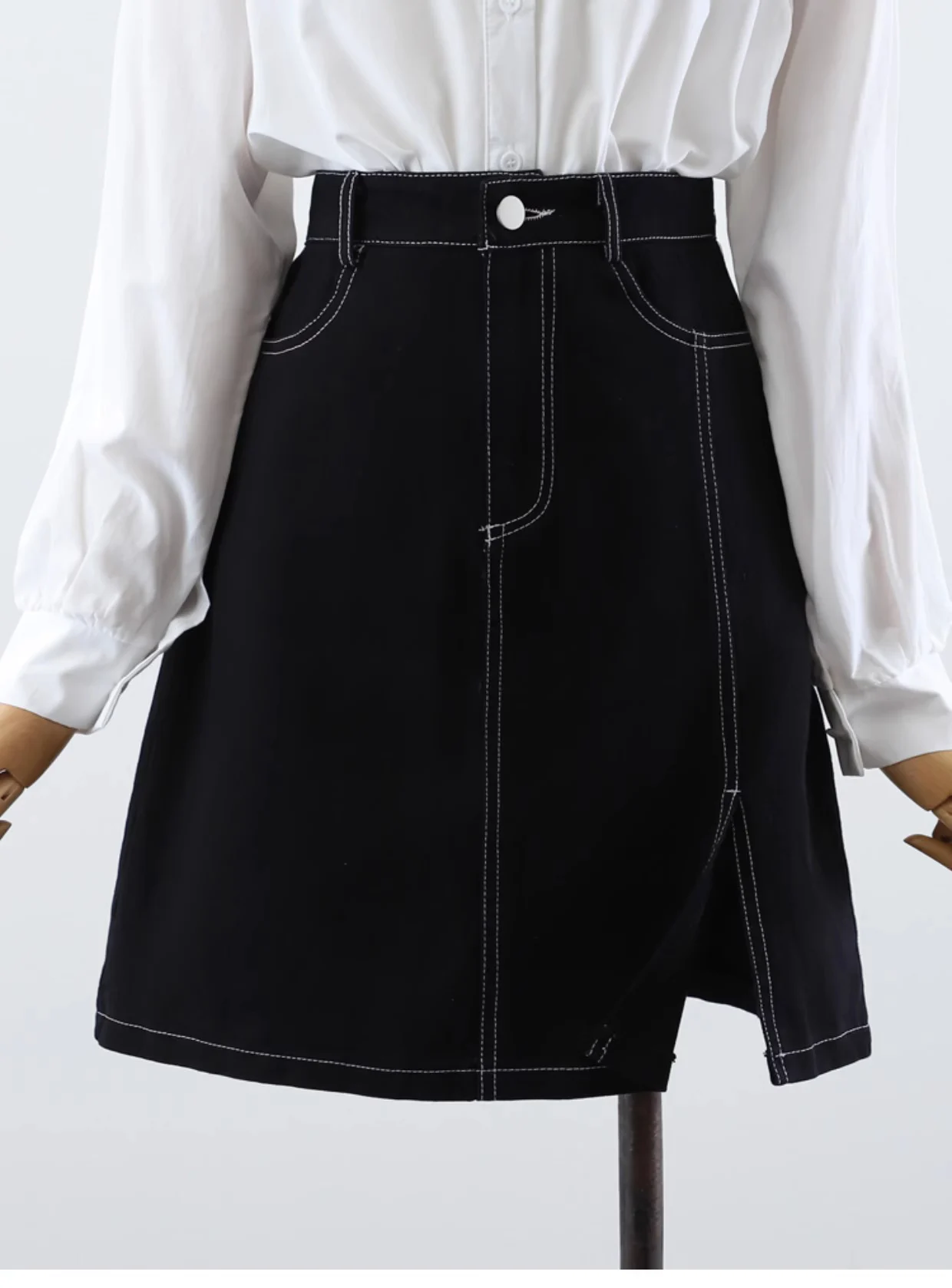 vmtvr Vintage Women Side Split Denim Skirts Pocket Ladies 2024 Summer A-Line Loose Casual High Waist Knee-Length Jeans Skirt