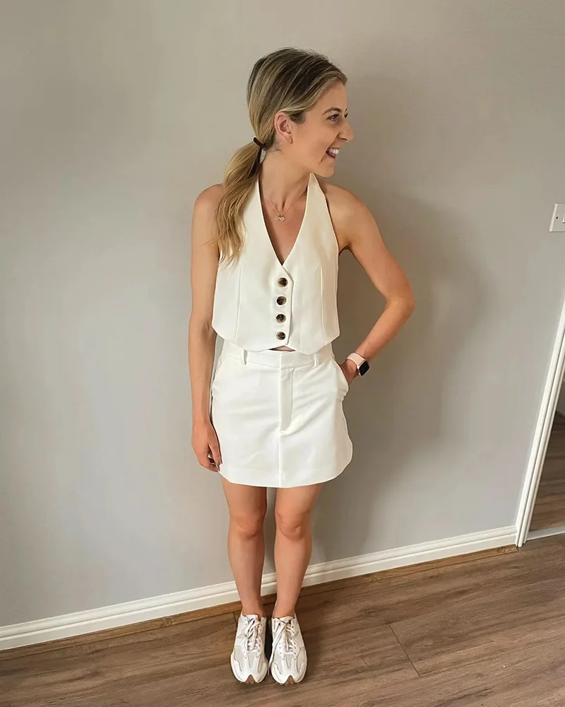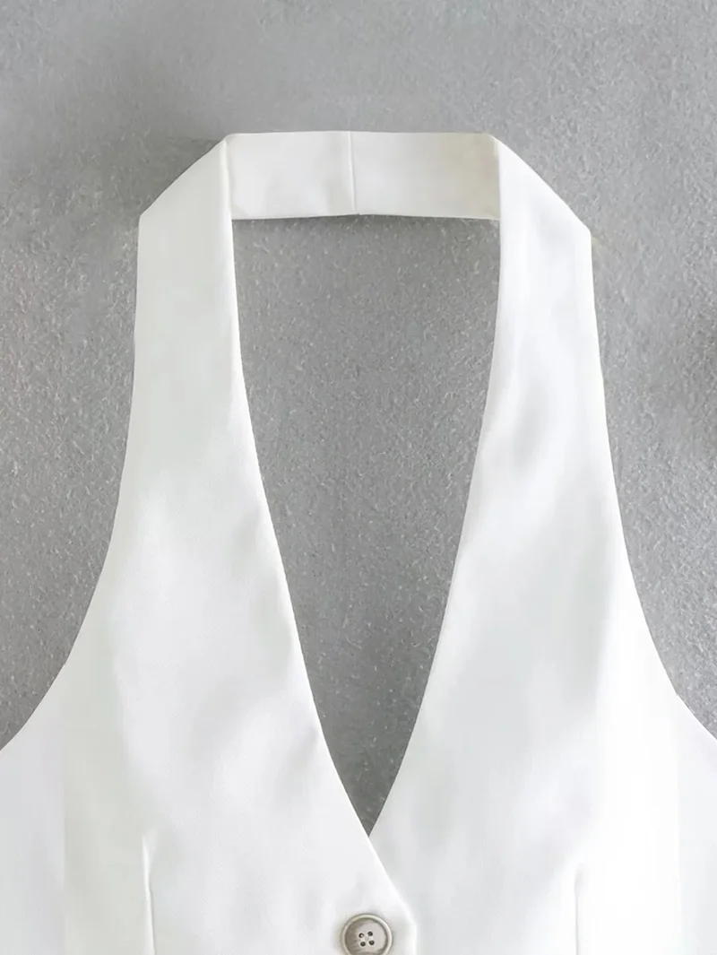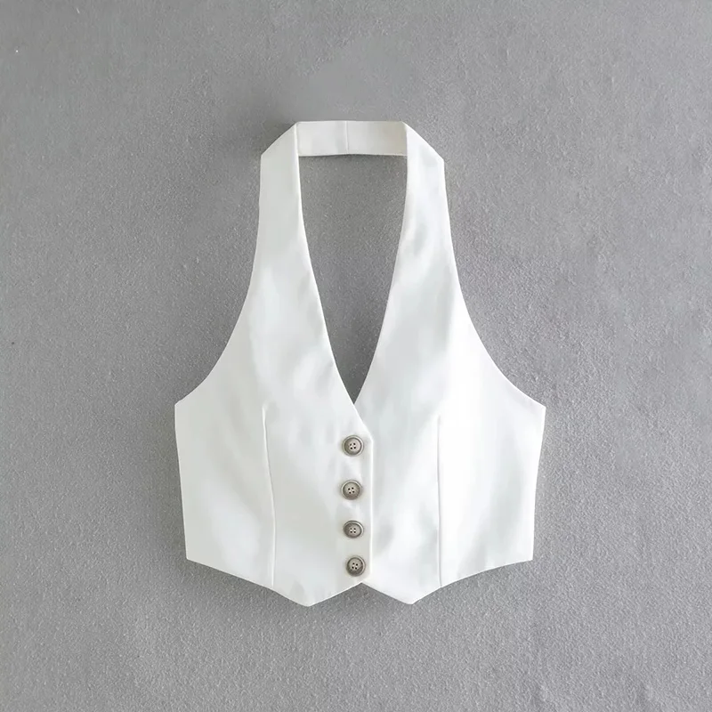 vmtvr White Summer Crop Top Woman Halterneck Vest Sleeveless Jackets Waistcoat Fashion Elegant Vintage Chic Stylish Slim Casual Basic