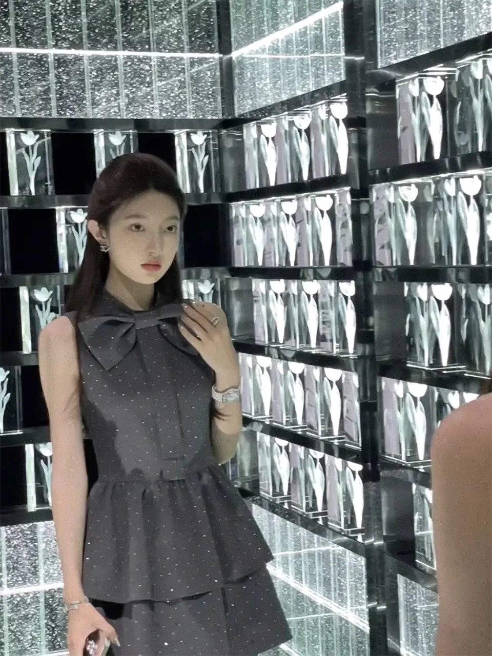 vmtvr Women Bow Design Elegant Dress Casual Sweet Style Sleeveless O-Neck Dress Women Summer Dress