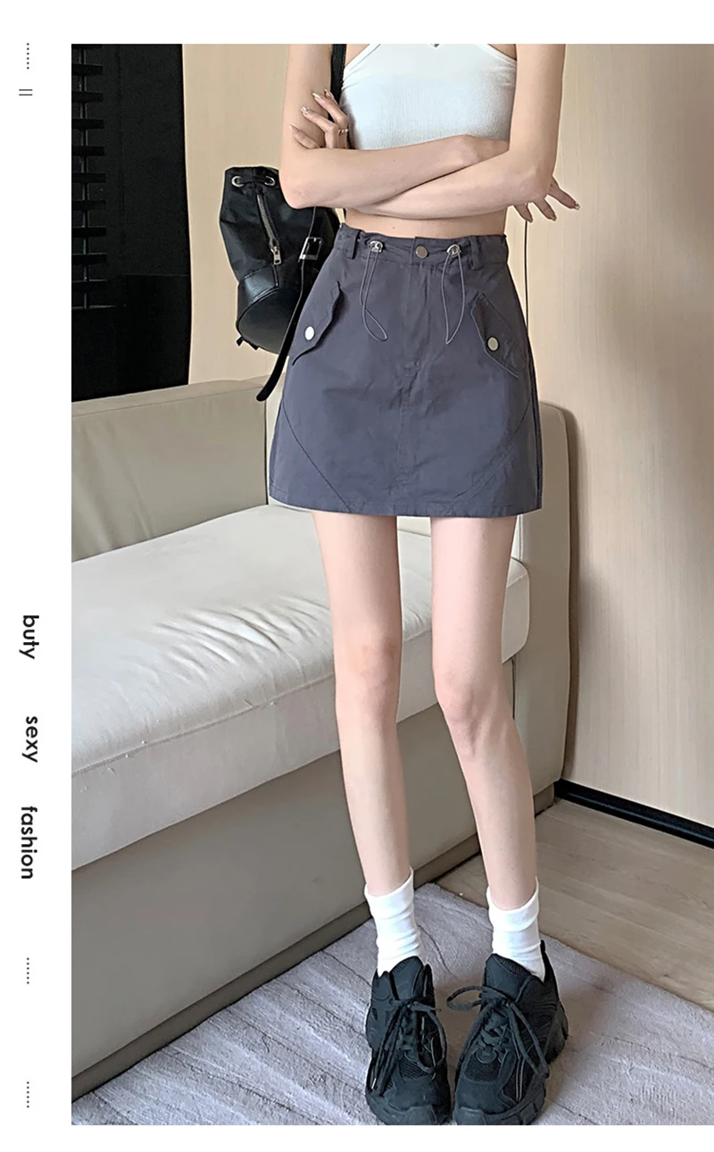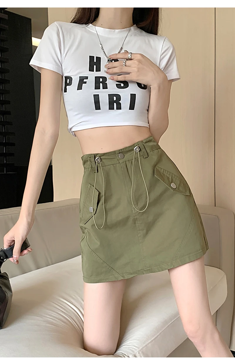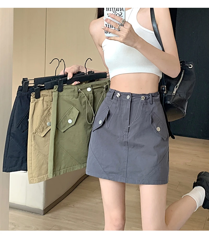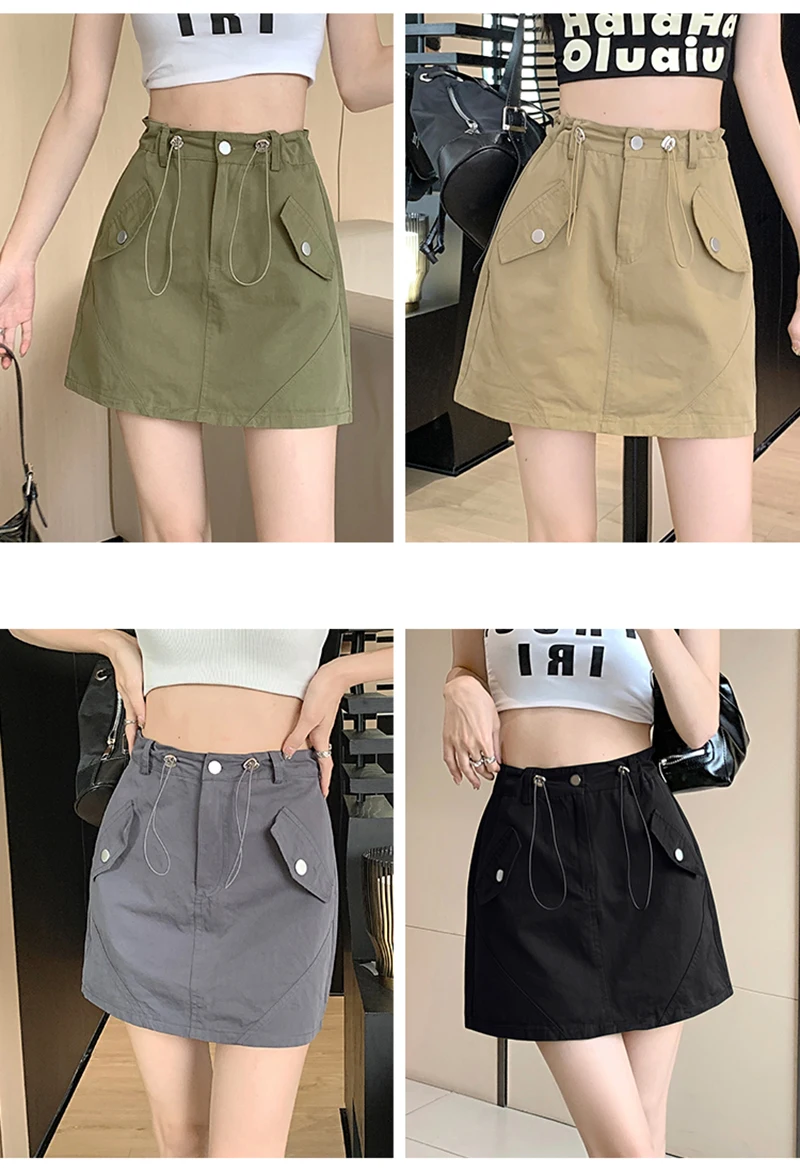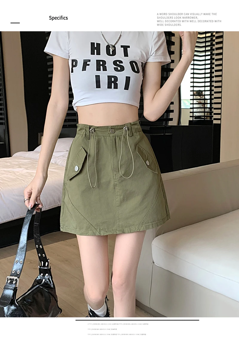 vmtvr Women Drawstring Cargo Skirt Fashion High Waist Preppy Style A Line Mini Skirt Summer Korean Casual All Match Sexy Skirt