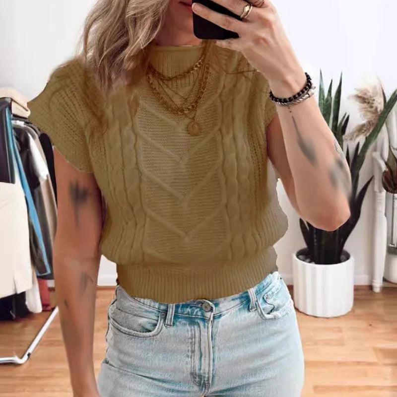 vmtvr Women Fashion Solid Twist Knitted Sweaters 2024 Spring Half High Collar Loose Top Pullover Summer Short Sleeve Vest Jumper Mujer