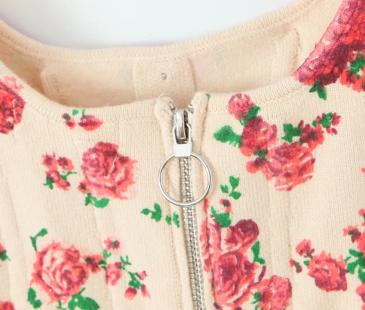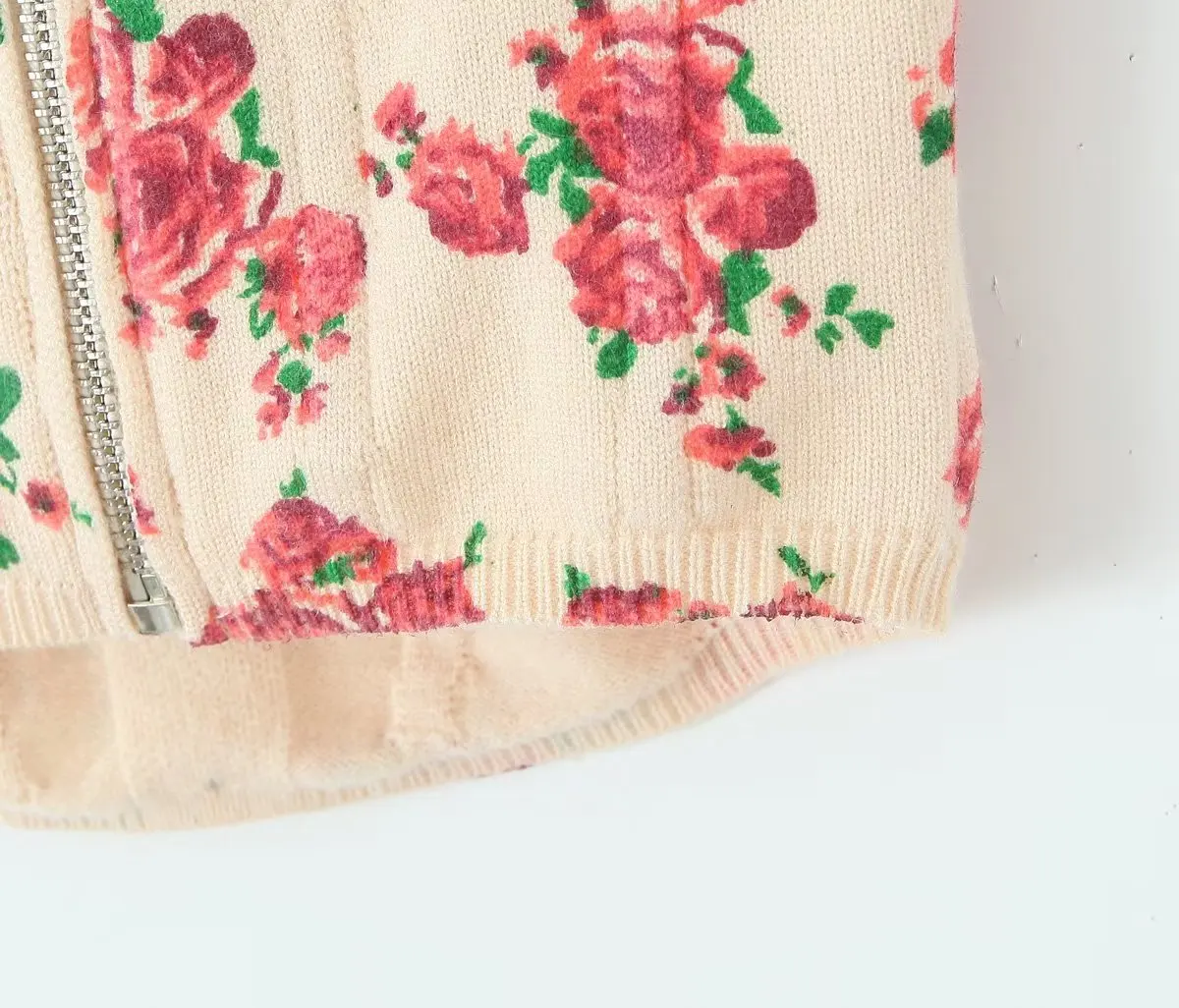 vmtvr Women French Style Floral Print Knit Camis Sexy Sleeveless Zipper Back Ladies Summer Tank Crop Top