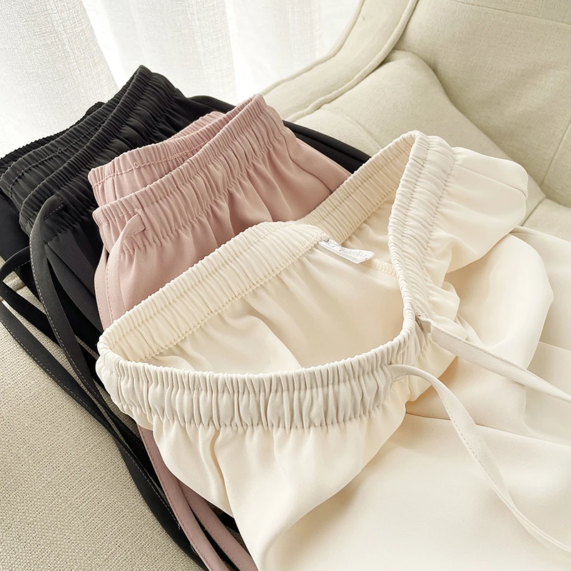 vmtvr Women High Waist Suit Pants Summer Casual Female Ice Silk Loose Wide Leg Pants Korean Fashion Office Ladies All Match Trousers