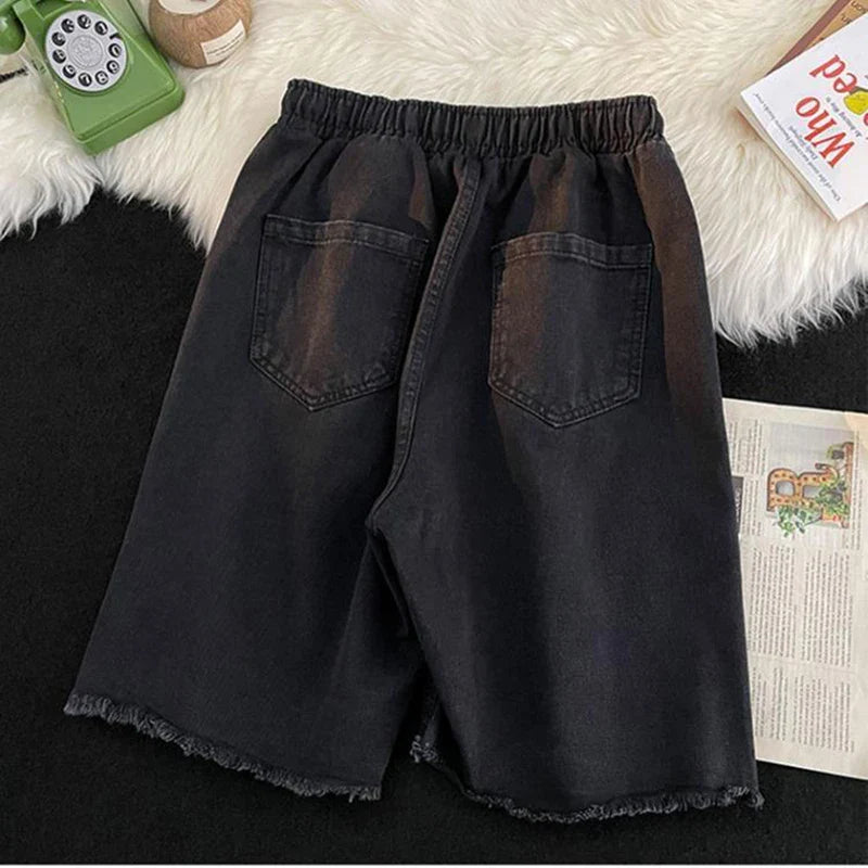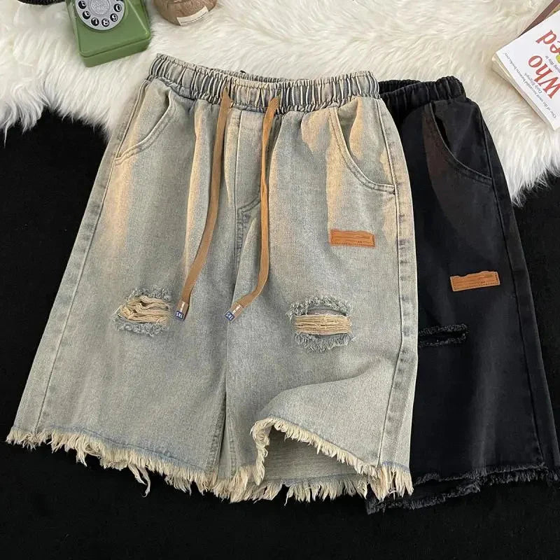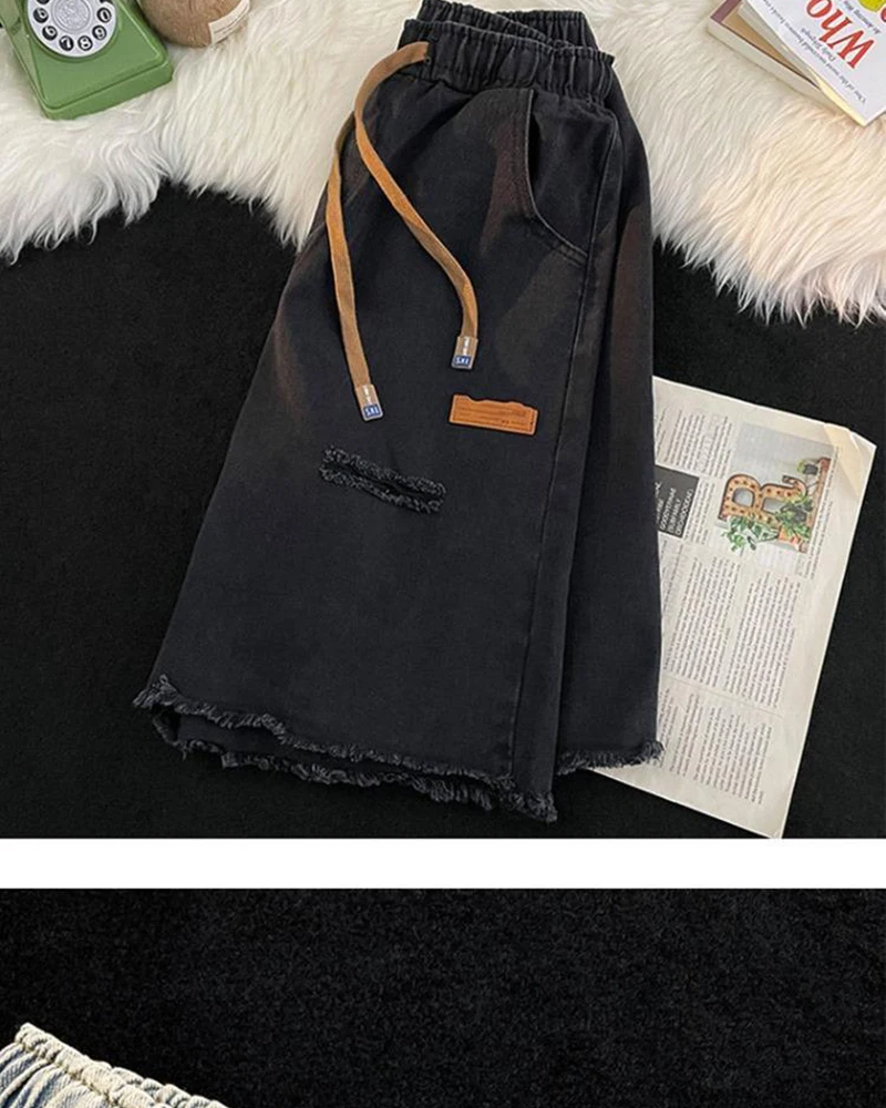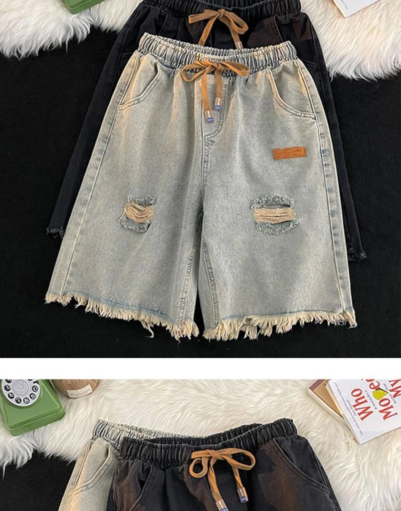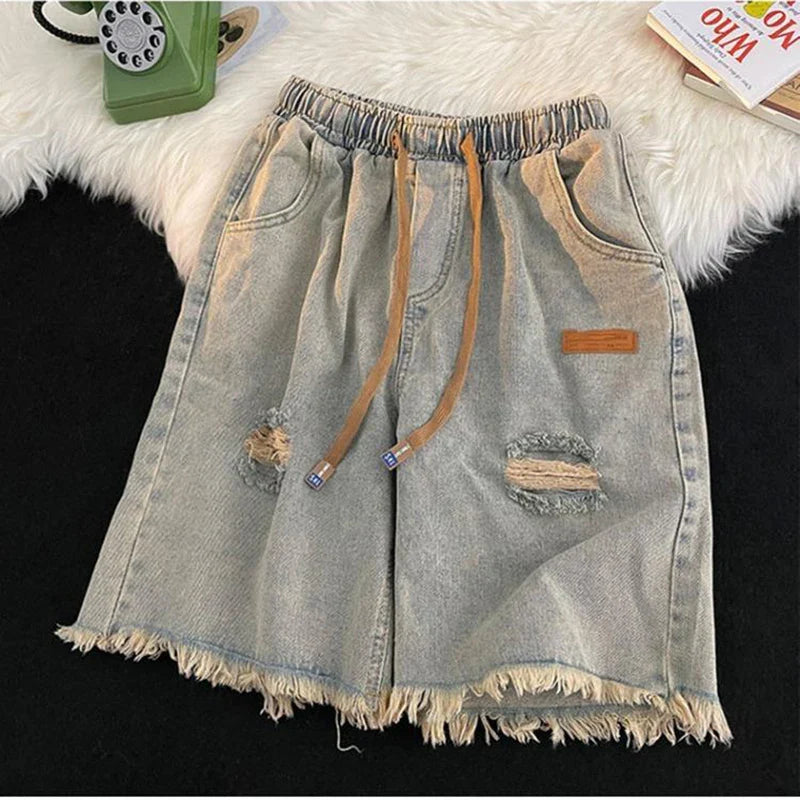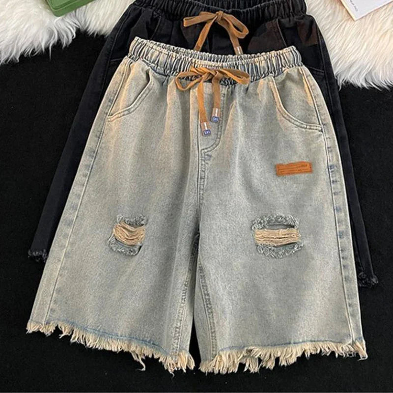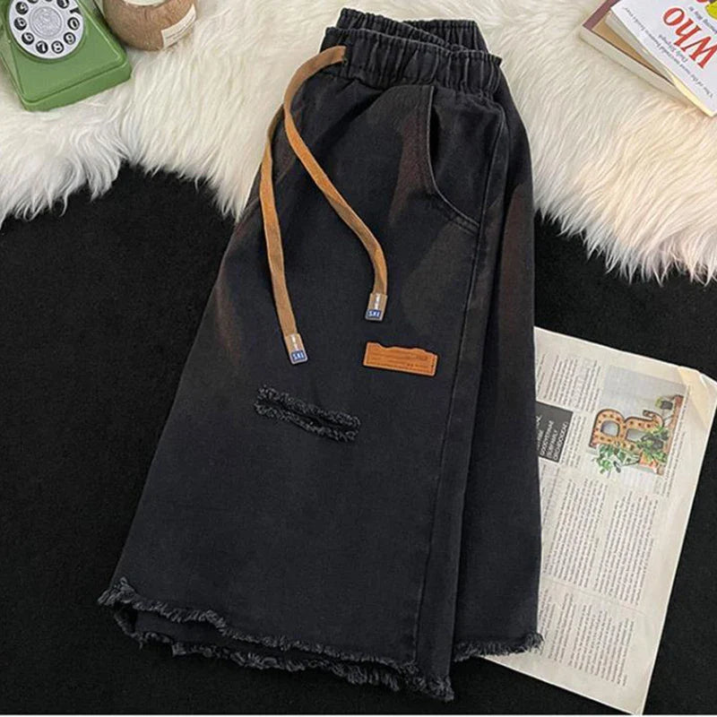 vmtvr Women Ripped Denim Shorts Summer Korean Fashion Tassels Loose Wide Leg Pants Casual Streetwear Female High Waist Shorts