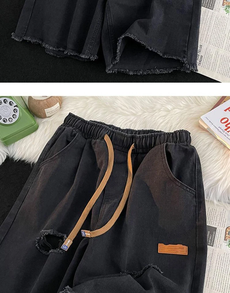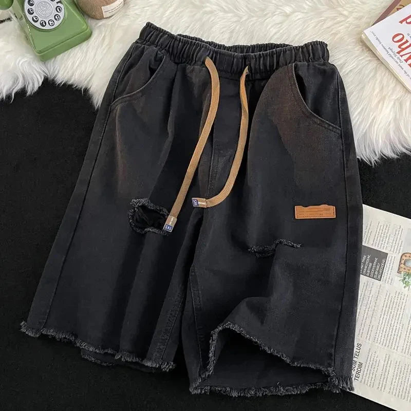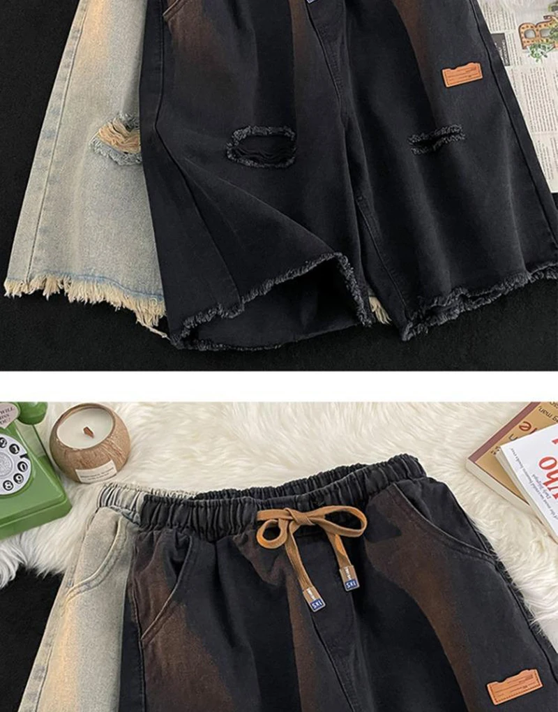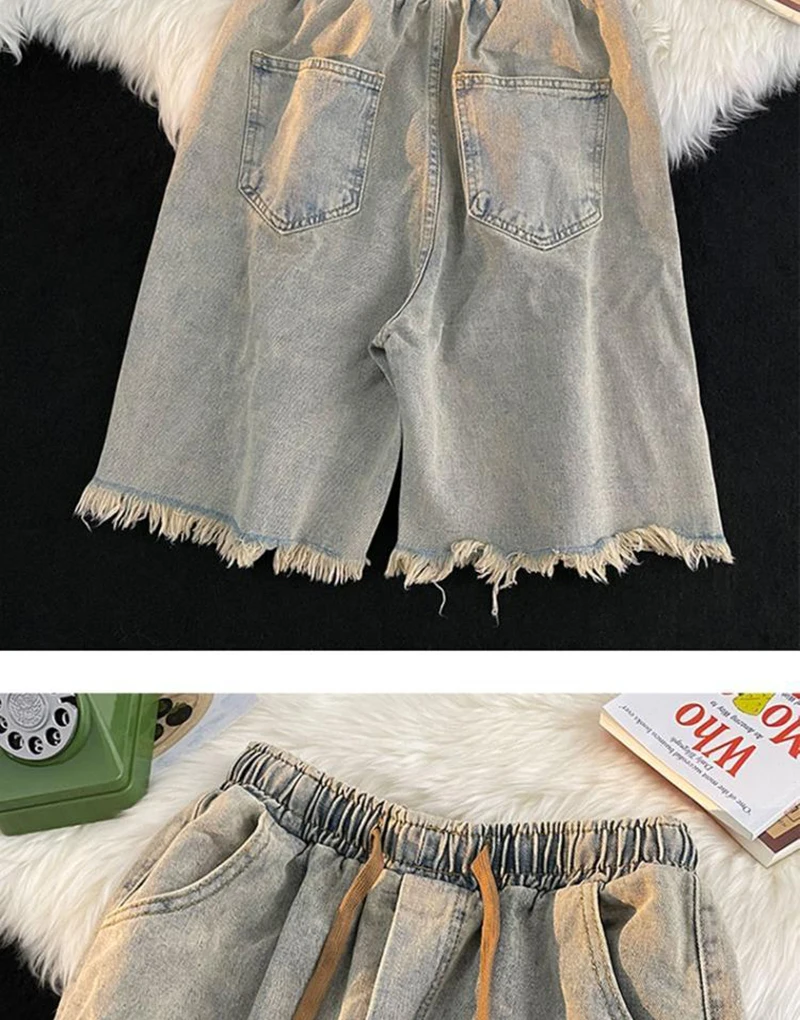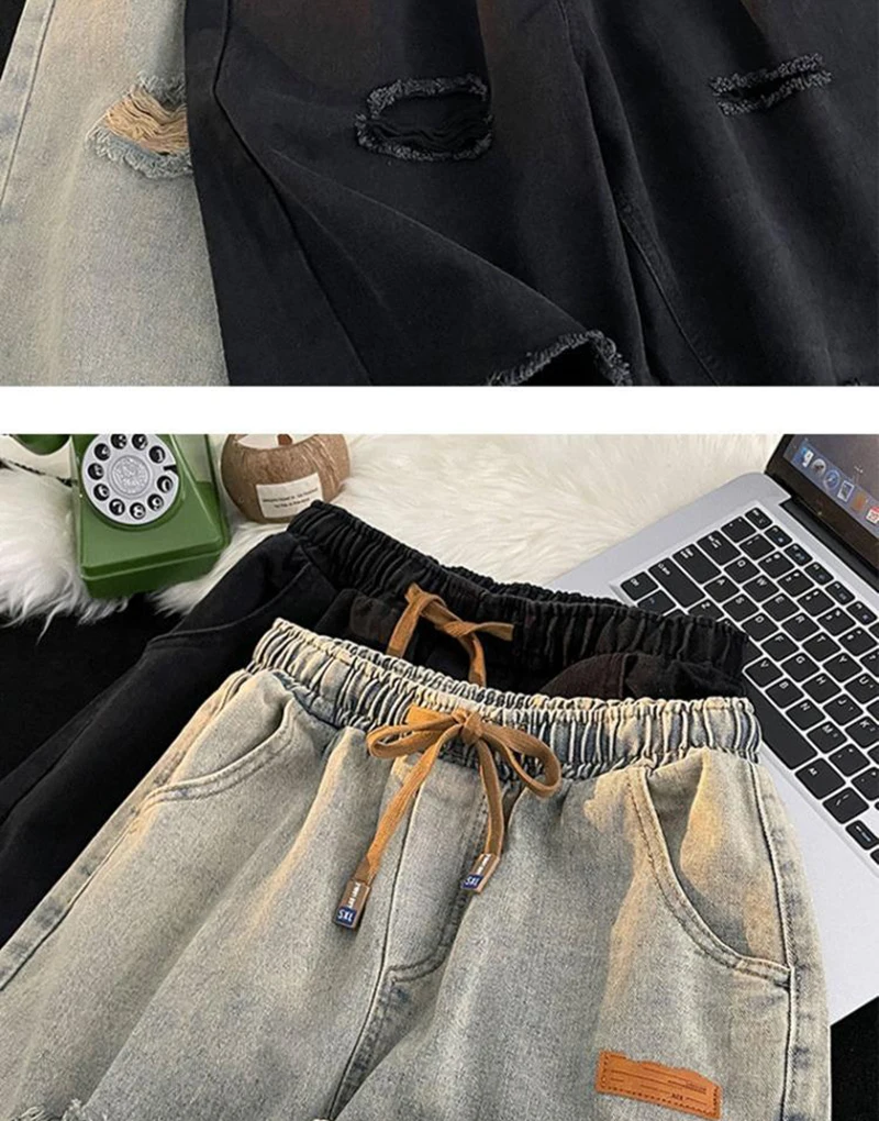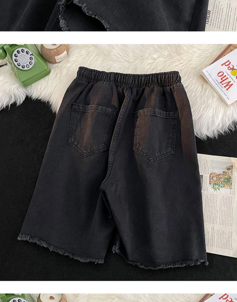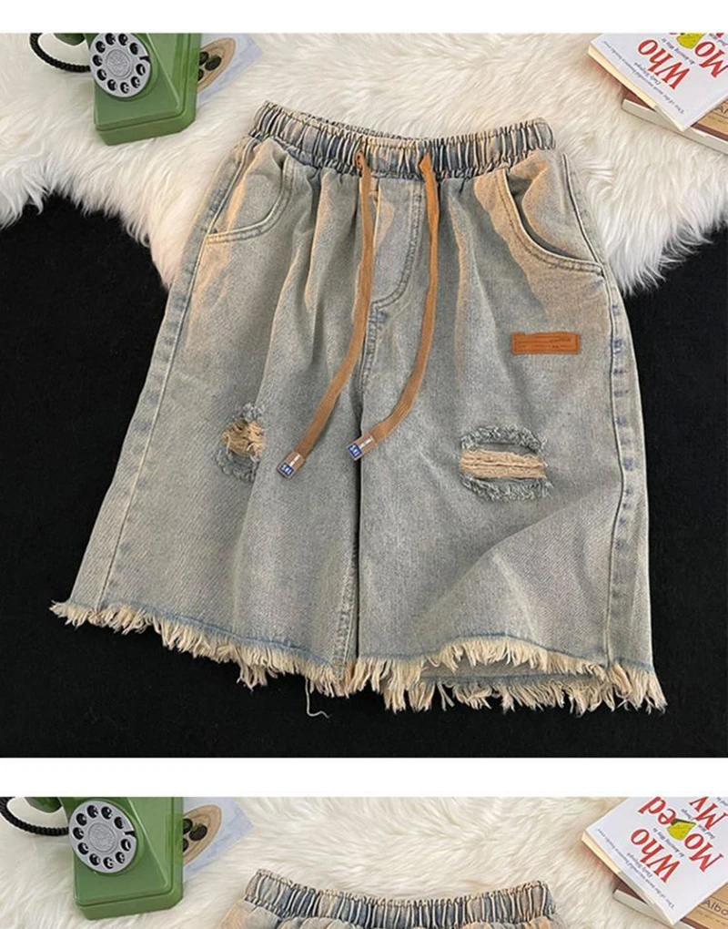 vmtvr Women Ripped Denim Shorts Summer Korean Fashion Tassels Loose Wide Leg Pants Casual Streetwear Female High Waist Shorts