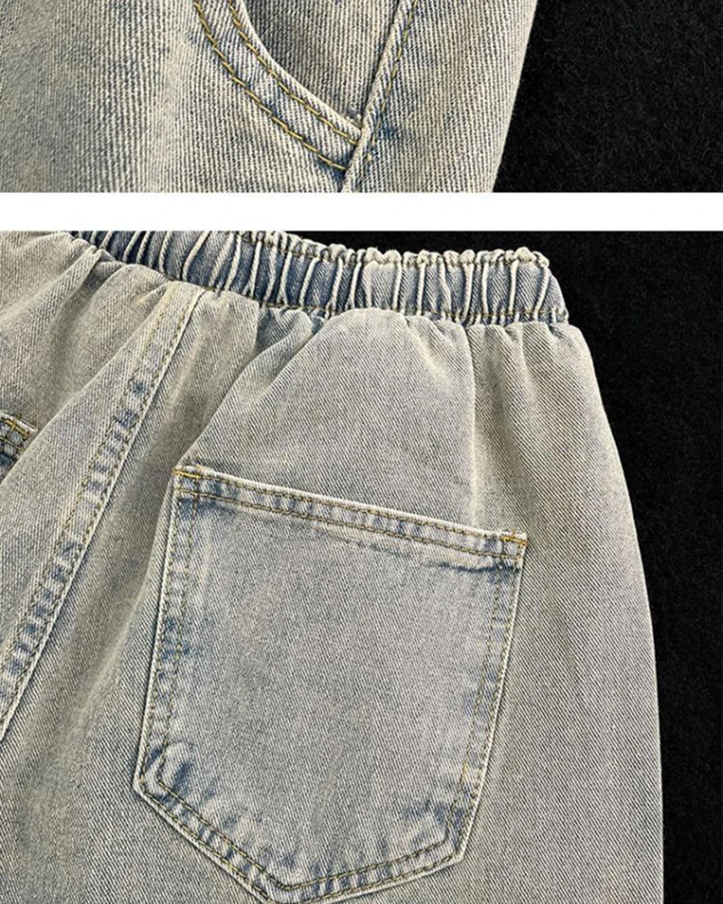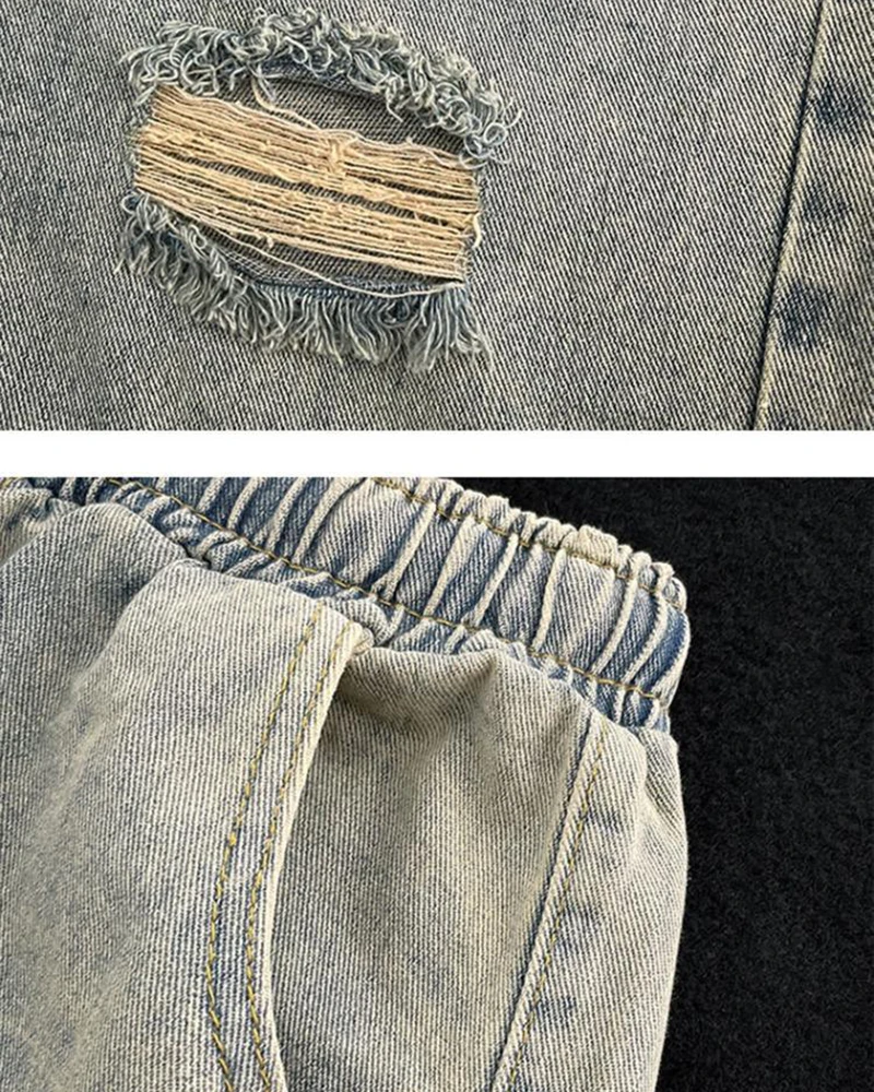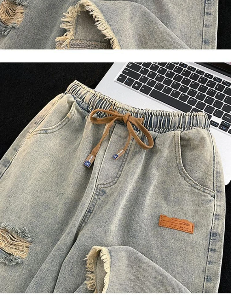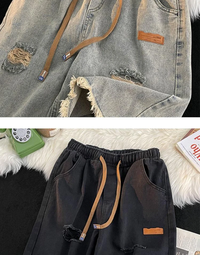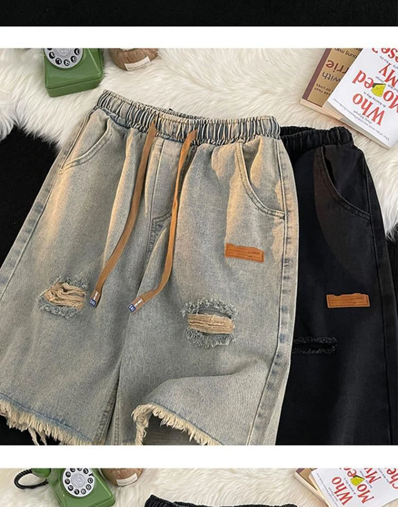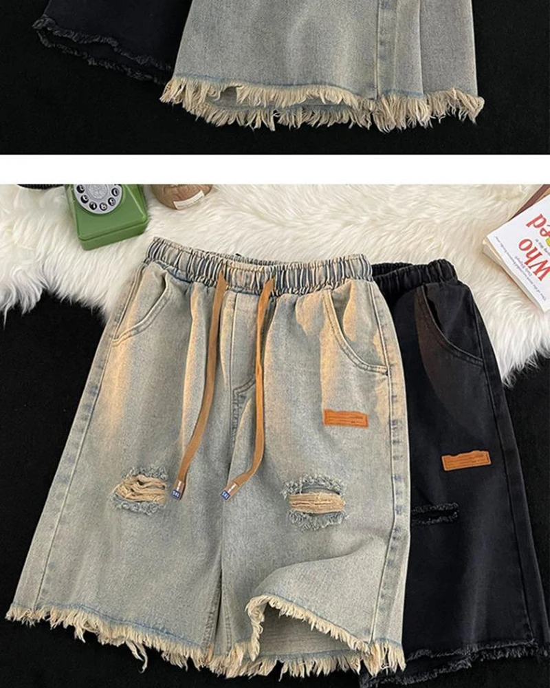 vmtvr Women Ripped Denim Shorts Summer Korean Fashion Tassels Loose Wide Leg Pants Casual Streetwear Female High Waist Shorts