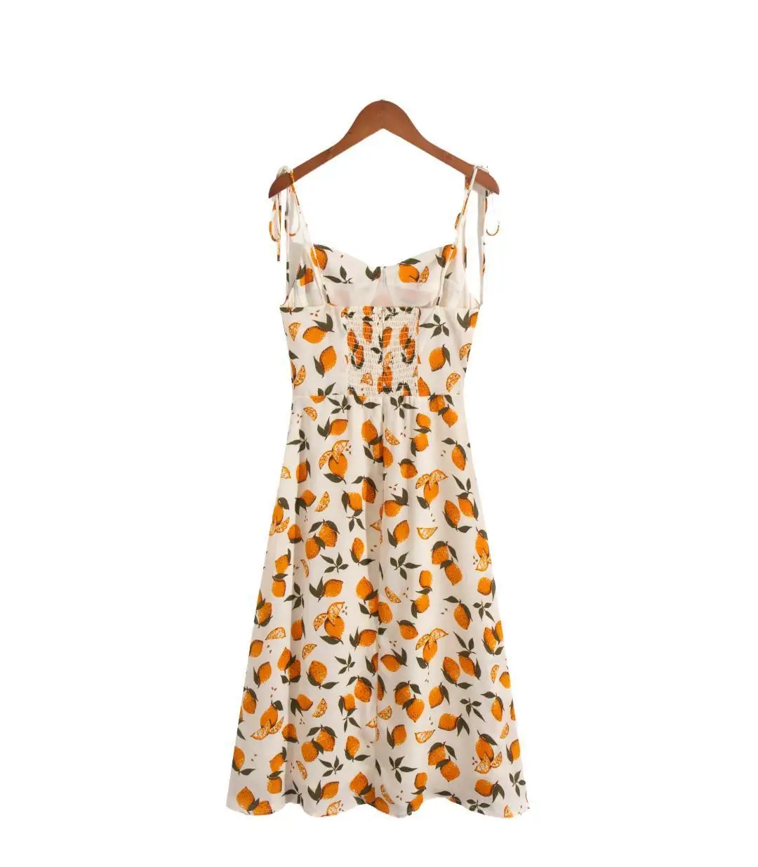vmtvr Women Strappy Camisole Lemon Print Dress Summer Split Backless Midi Dresses