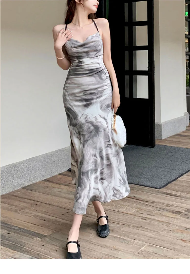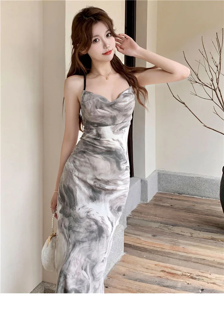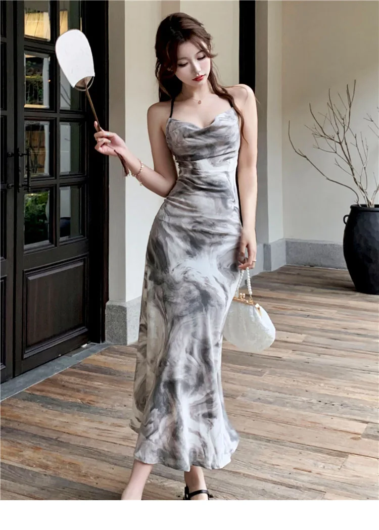 vmtvr Women Summer Bodycon Casual Print Dress Sleeveless Halter Slim Elegant Chic Party Sexy Vestidos Female Beach Holiday Robe New