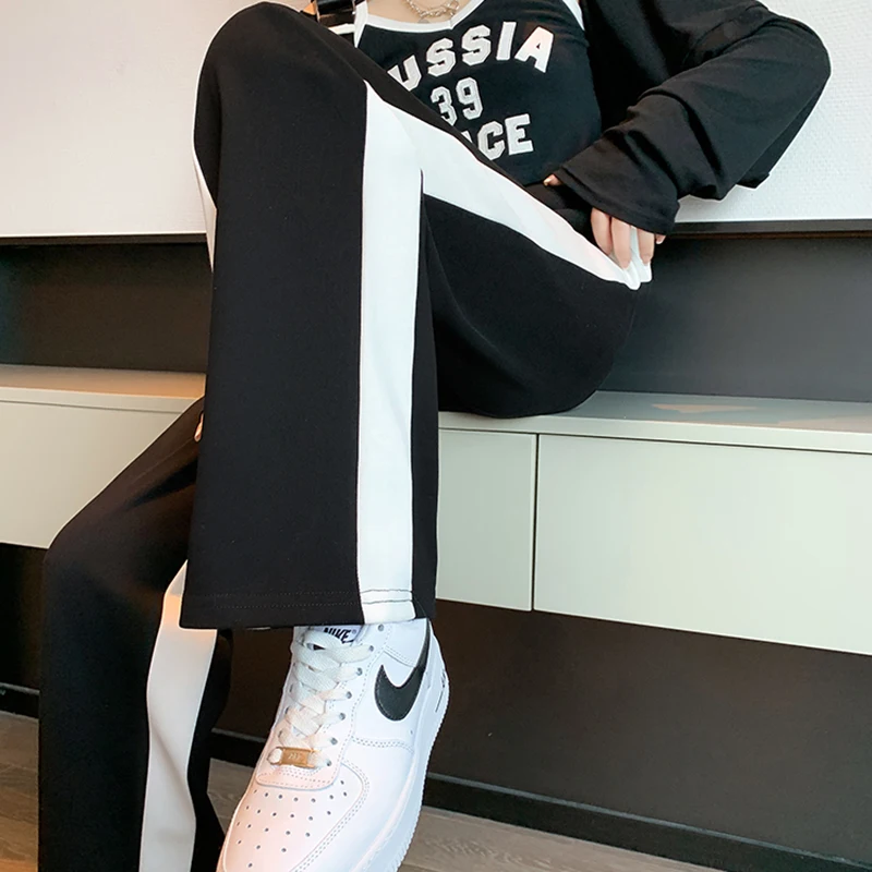 vmtvr Y2K Fashion Patchwork Women Sweatpants Summer Casual Streetwear Loose Straight Leg Pants Korean All Match Female Trousers