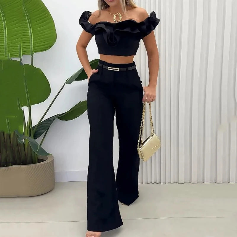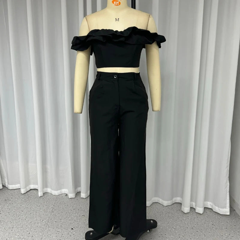vmtvr y2k outfits 2024 Summer New Women's Clothing Solid Color off-the-Neck Navel Top Sweet and Spicy Style Two-Piece Set