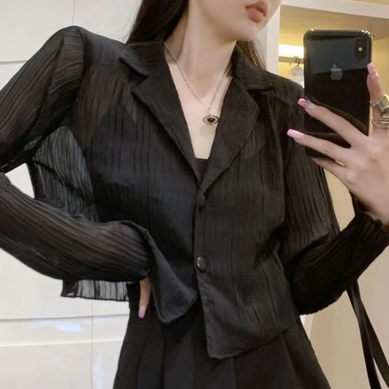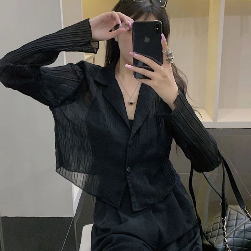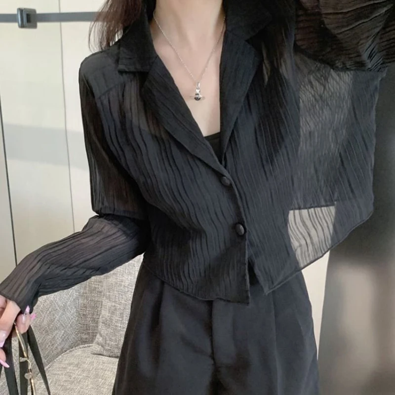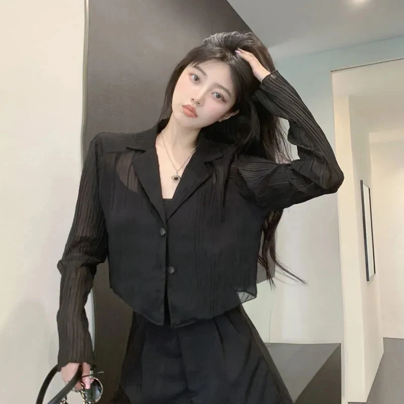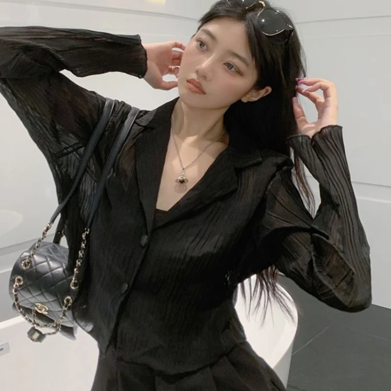 vmtvr Y2K Women Black Sun Protection Shirts Summer Fashion Streetwear Buttons Long Sleeve Tops Korean Casual Female Loose Blouse