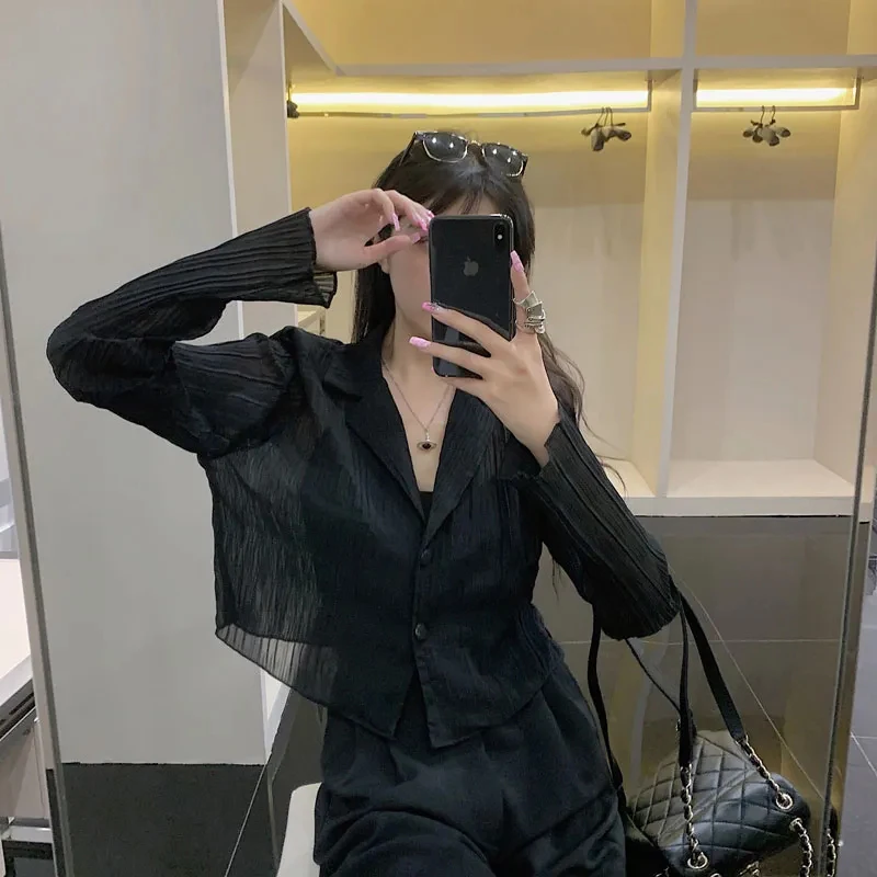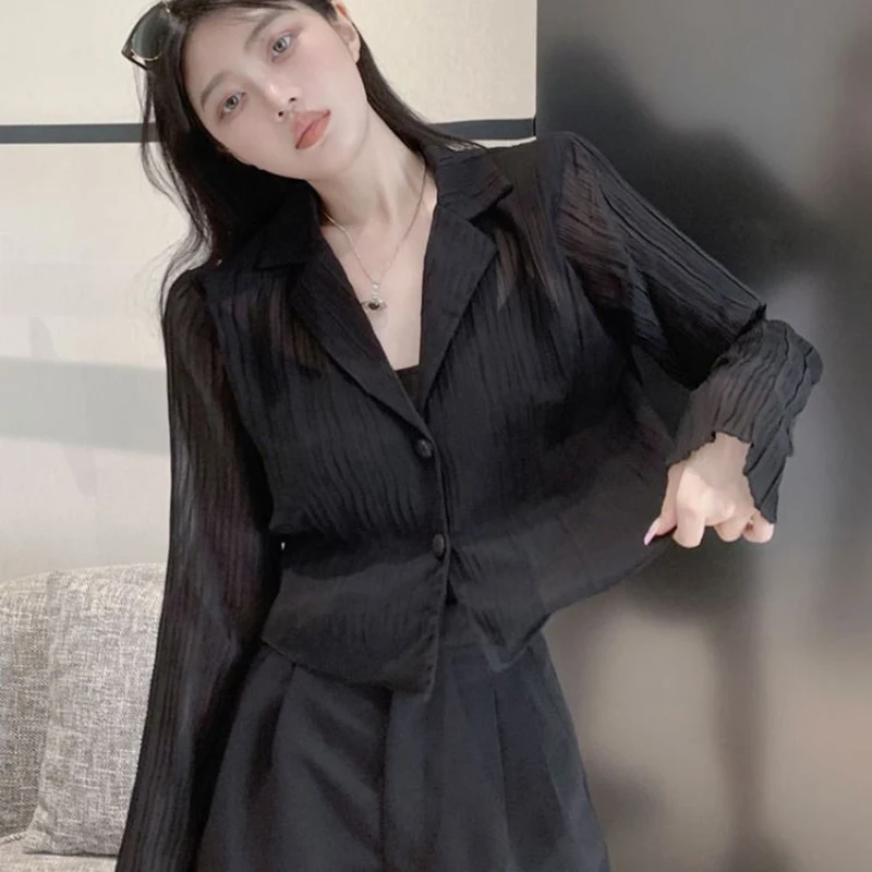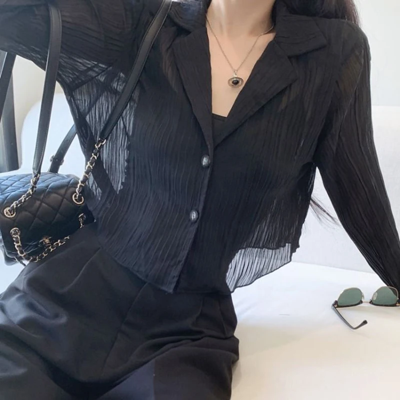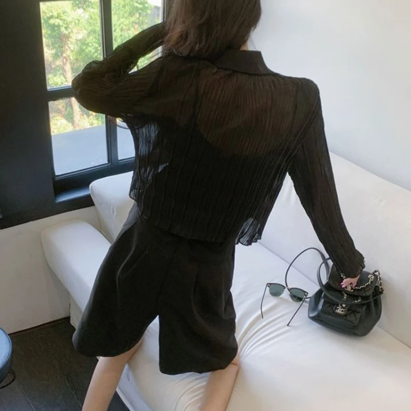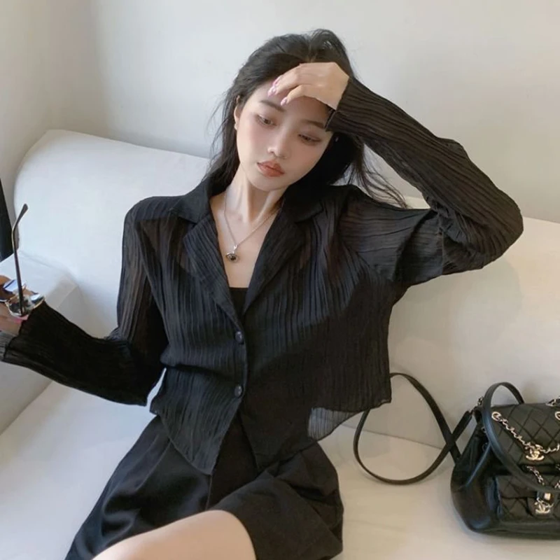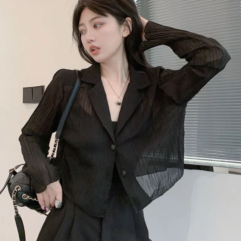 vmtvr Y2K Women Black Sun Protection Shirts Summer Fashion Streetwear Buttons Long Sleeve Tops Korean Casual Female Loose Blouse