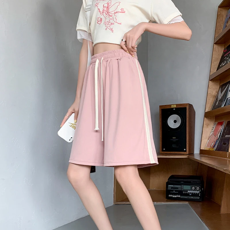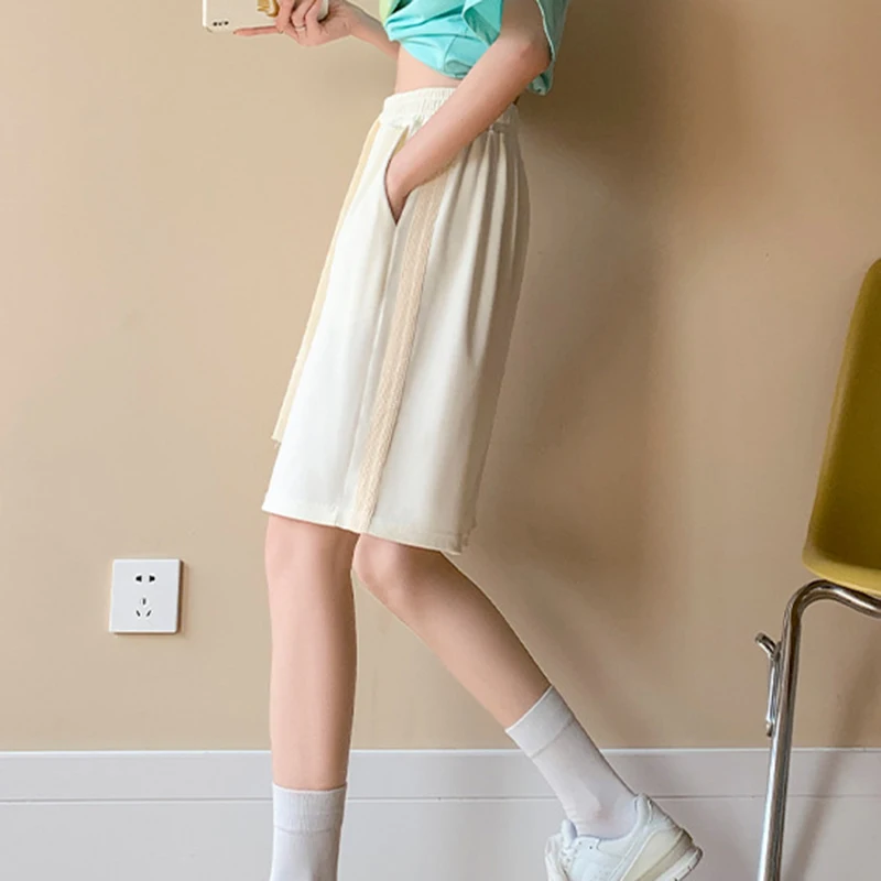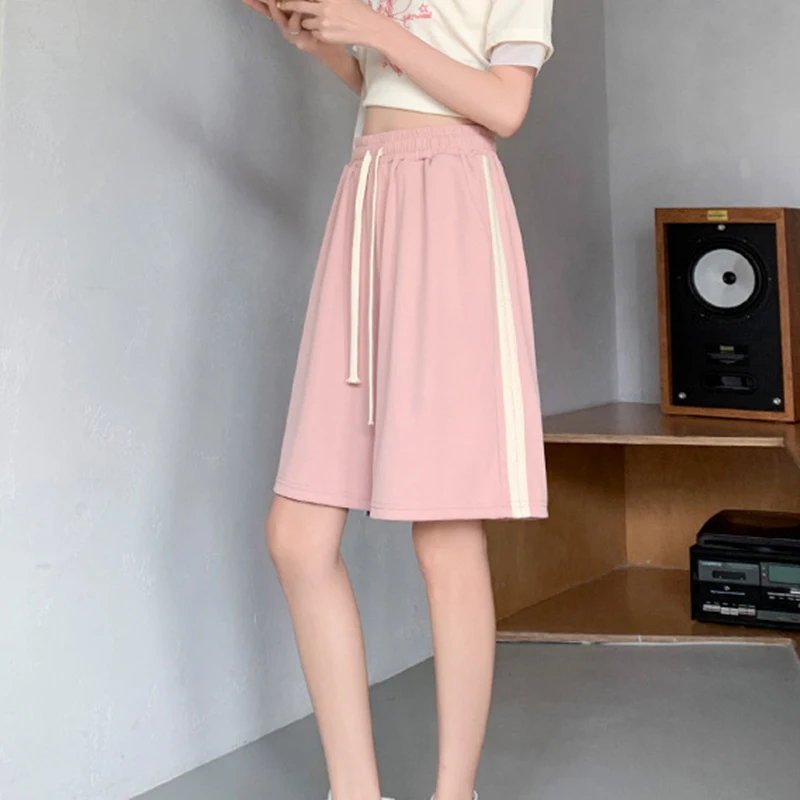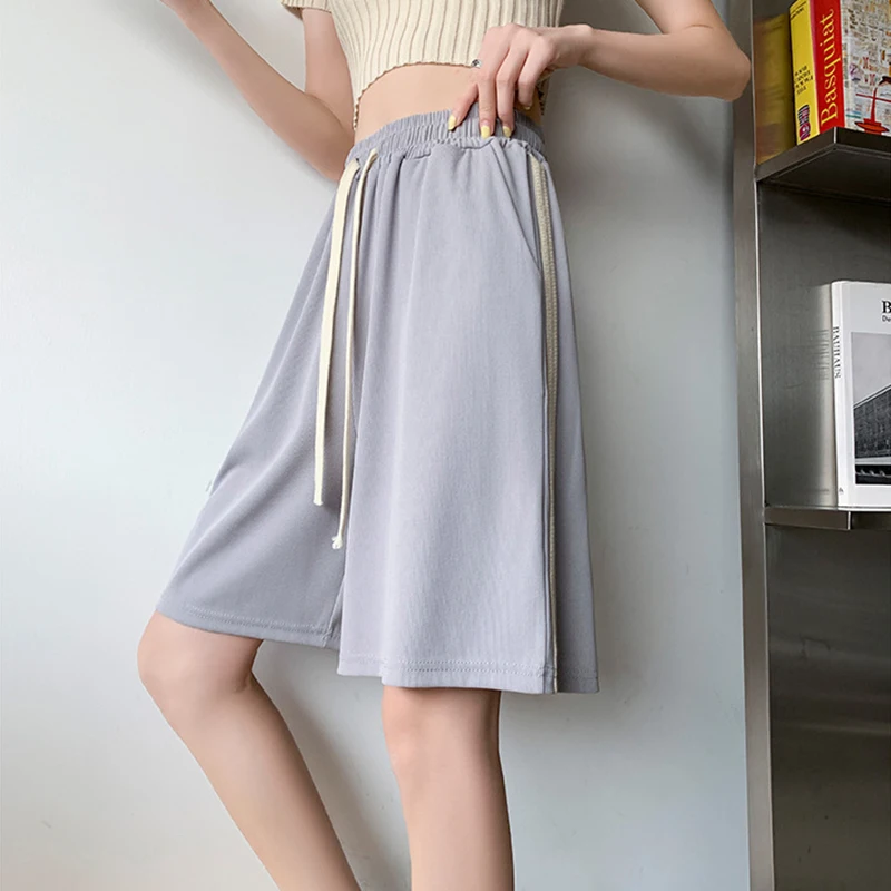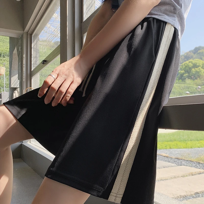 vmtvr Y2K Women High Waist Ice Silk Shorts Korean Fashion Striped Loose Wide Leg Pants Female Summer Casual Sports Shorts